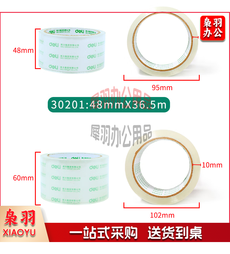 得力透明胶带大号宽胶带打包封箱带封口胶布大卷胶带单卷 宽4.8CM透明胶带30201