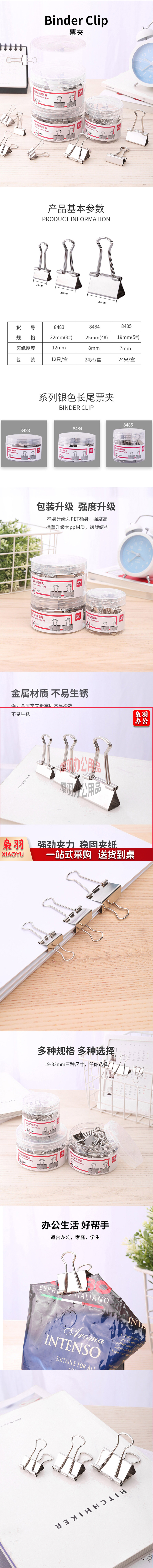得力/deli 8484 金属燕尾夹票据夹长尾夹筒装 24只/筒(银色)