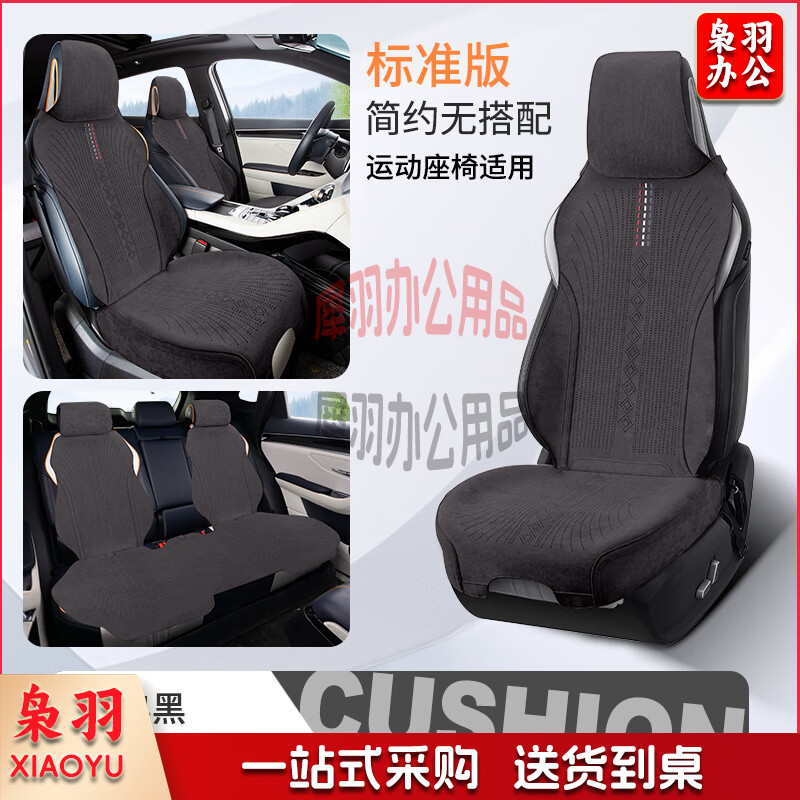 新款翻毛皮汽车坐垫四季通用小蛮腰透气时尚座垫半包小车垫座椅套 连帽版-经典黑【全车五座】 舒适款