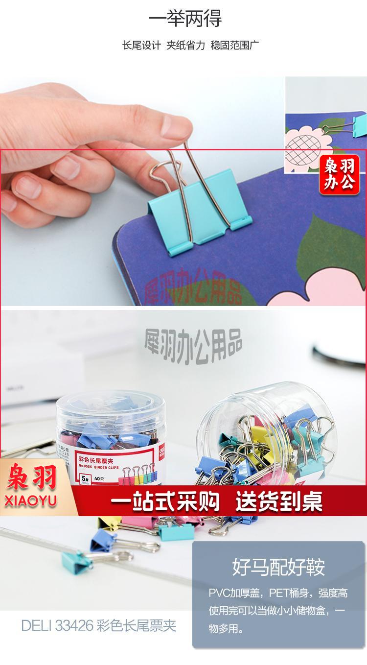 得力(deli)19mm彩色长尾夹票夹 5#小号金属燕尾夹票据文件夹子 办公用品 33426