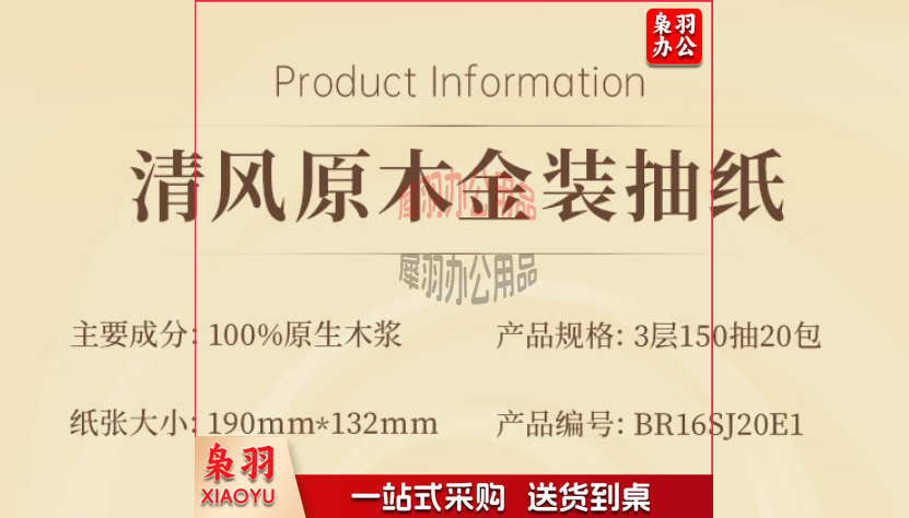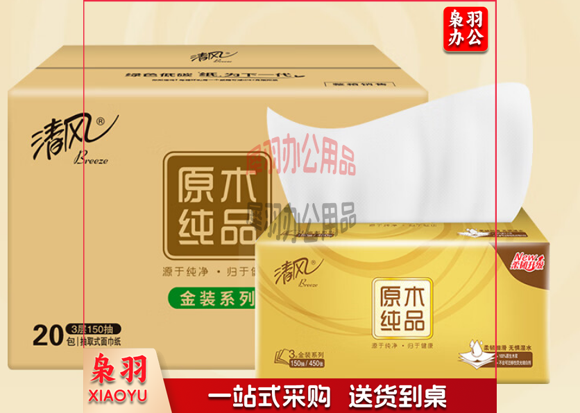 清风抽纸BR16SJ20E1面巾纸 金装系列 3层150抽*20包/箱