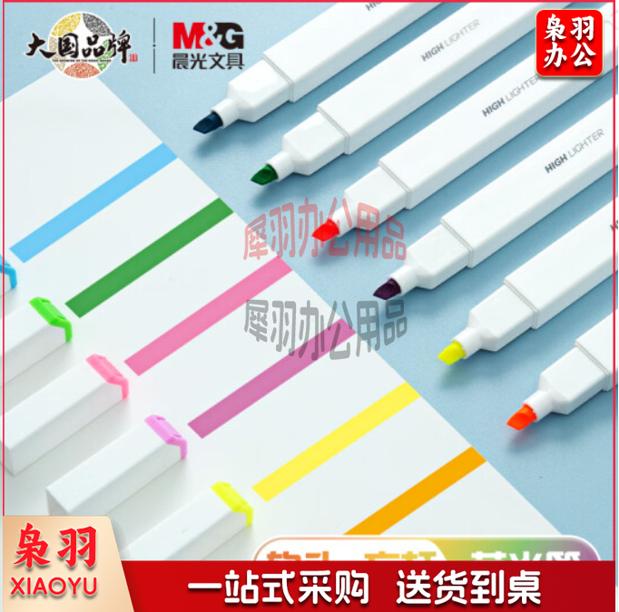 晨光文具6色软头荧光笔 考试复习重点标记笔 彩色记号笔 荧光晴朗色 AHMU1603