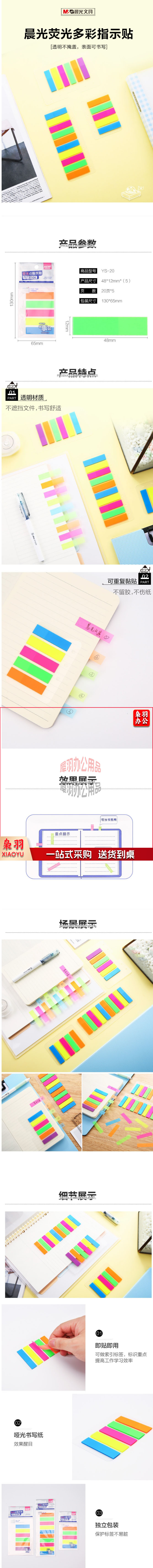 晨光YS-20 5色PET荧光便利贴 粘性标签贴姓名贴 记事留言贴优事贴便签本子 20页/条