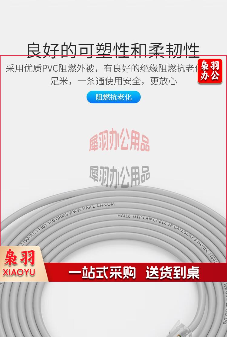 海乐(Haile)电话线2芯 HT-100-3M 纯铜 成品跳线 带水晶头 灰色 3米