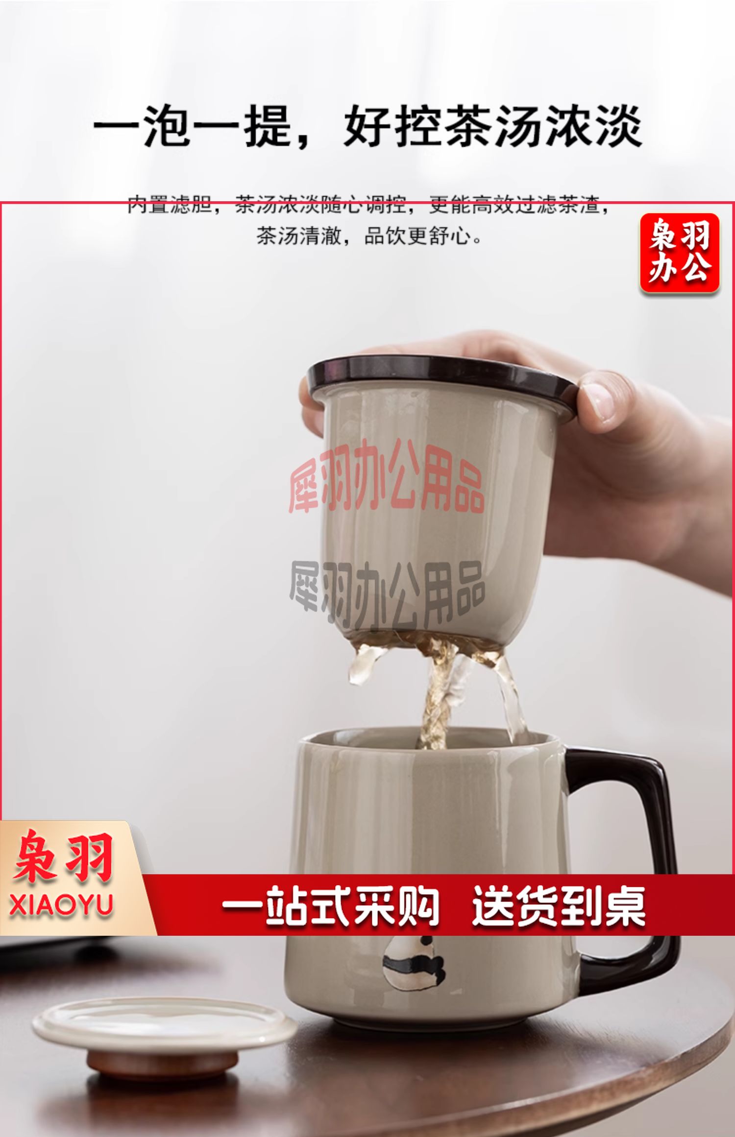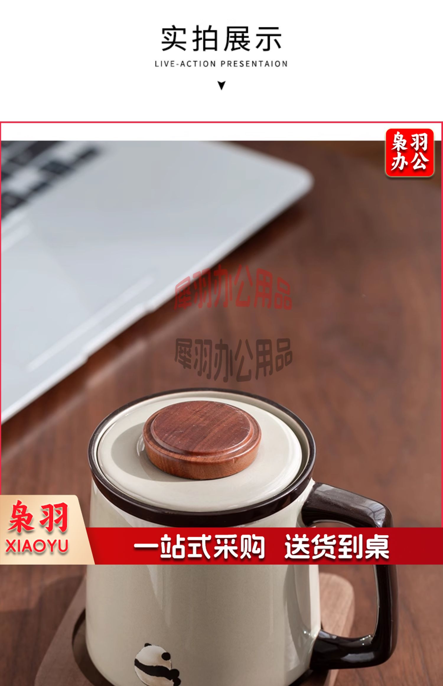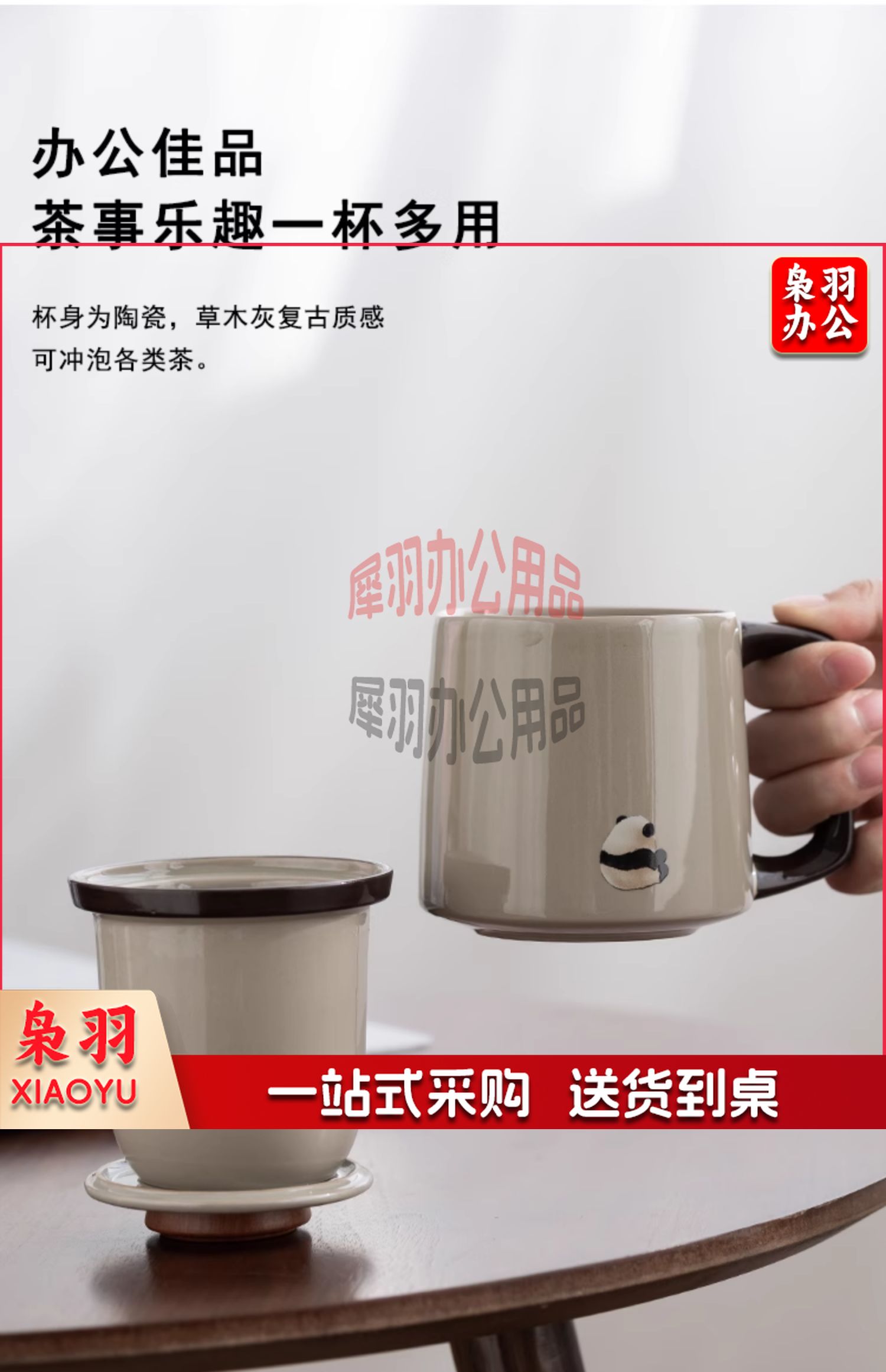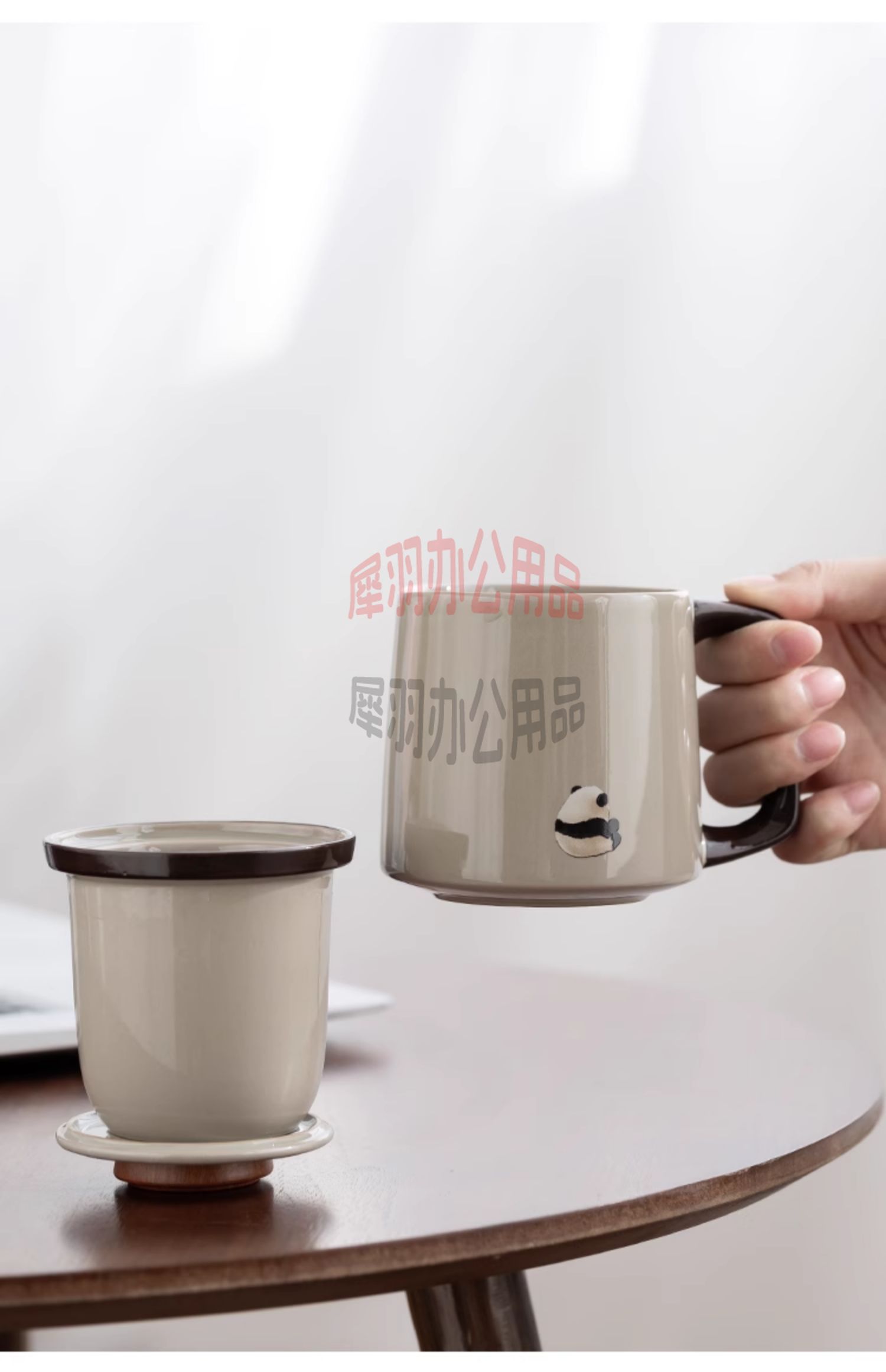 梅岭先生国潮可爱熊猫高颜值陶瓷马克杯家用办公杯盖过滤杯子水杯