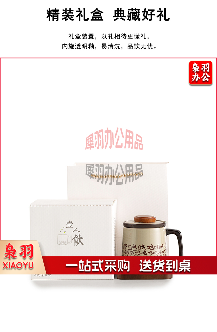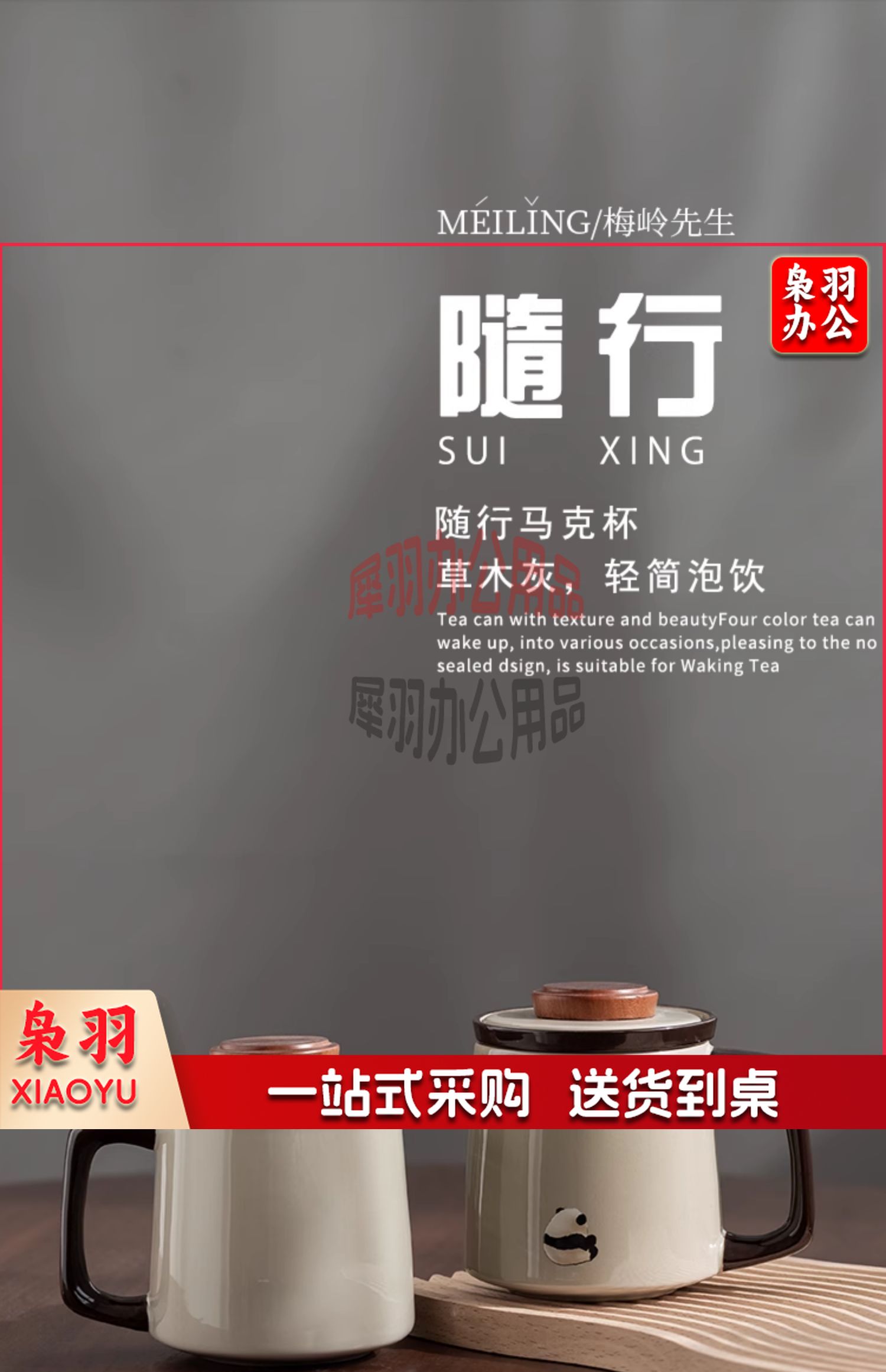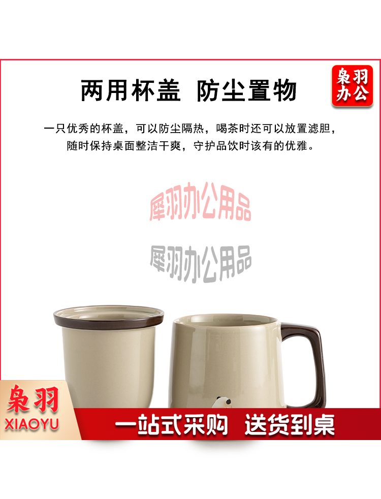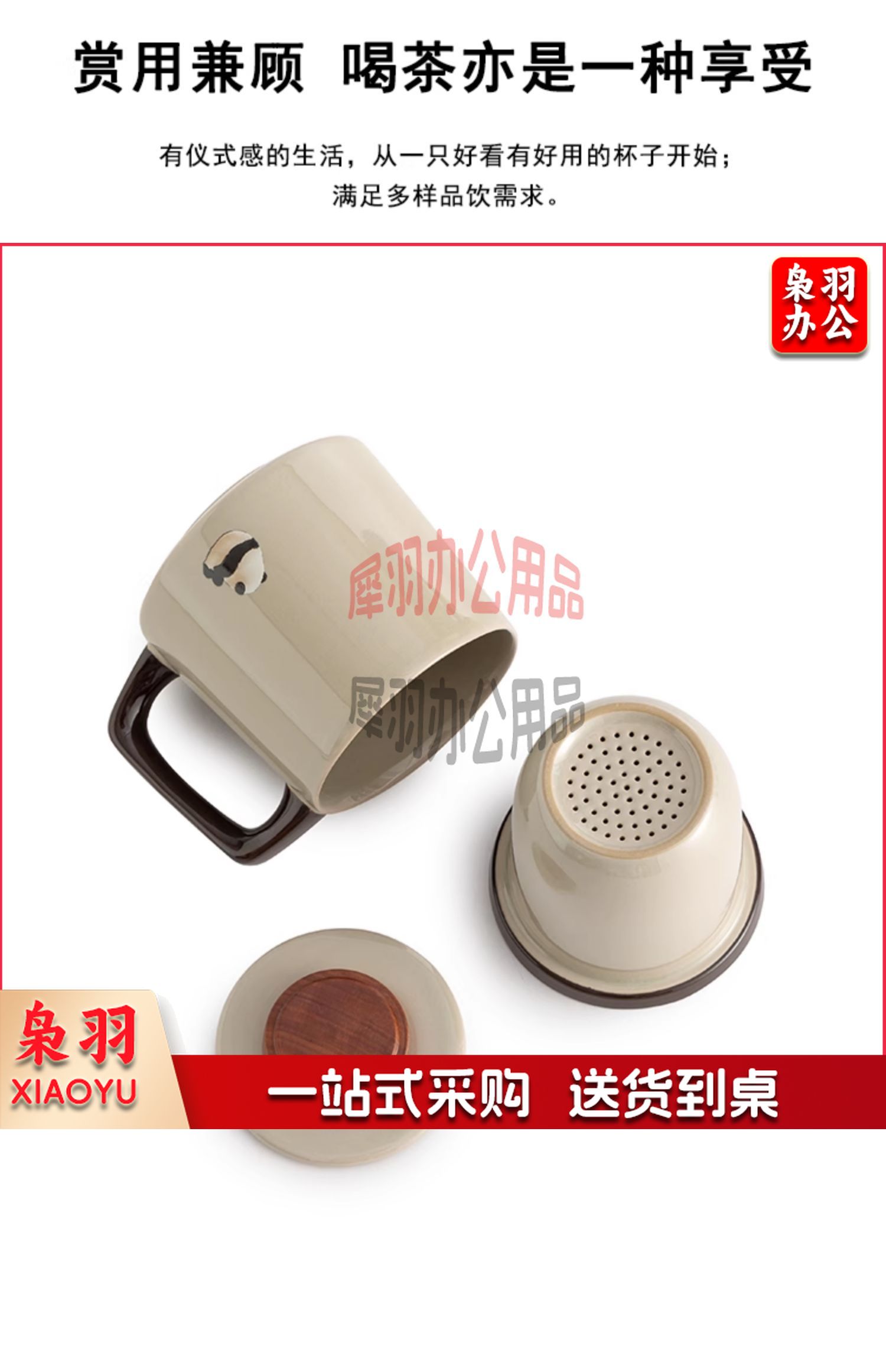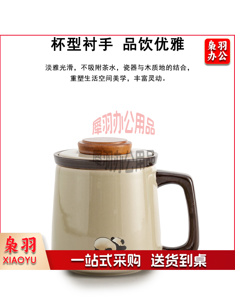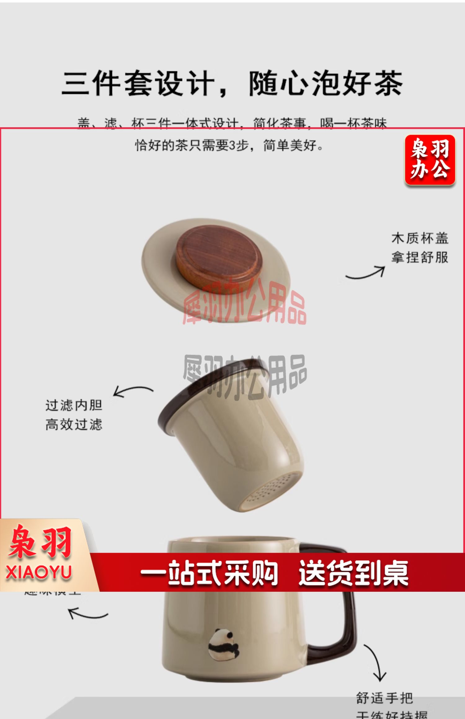 梅岭先生国潮可爱熊猫高颜值陶瓷马克杯家用办公杯盖过滤杯子水杯