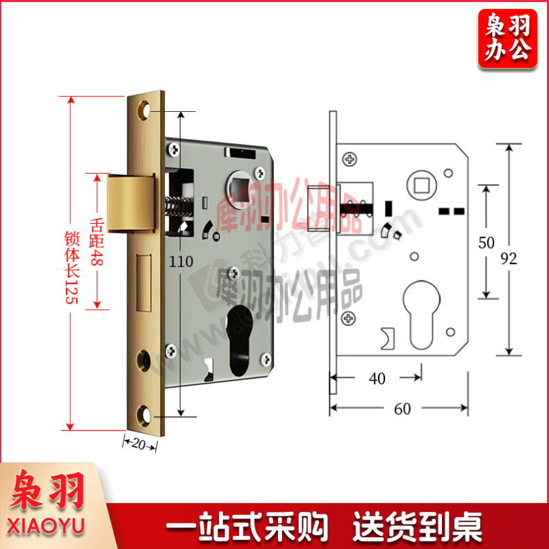 锁体 125轻弹簧 舌距48 适配门厚度35-50mm