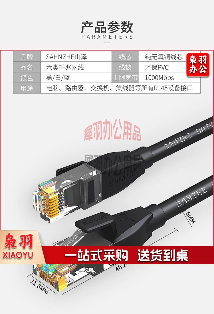 山泽(SAMZHE)六类网线 CAT6类千兆纯铜网线 成品电脑/家装/宽带网络连接跳线 黑色10米HCT100 匹配路由器