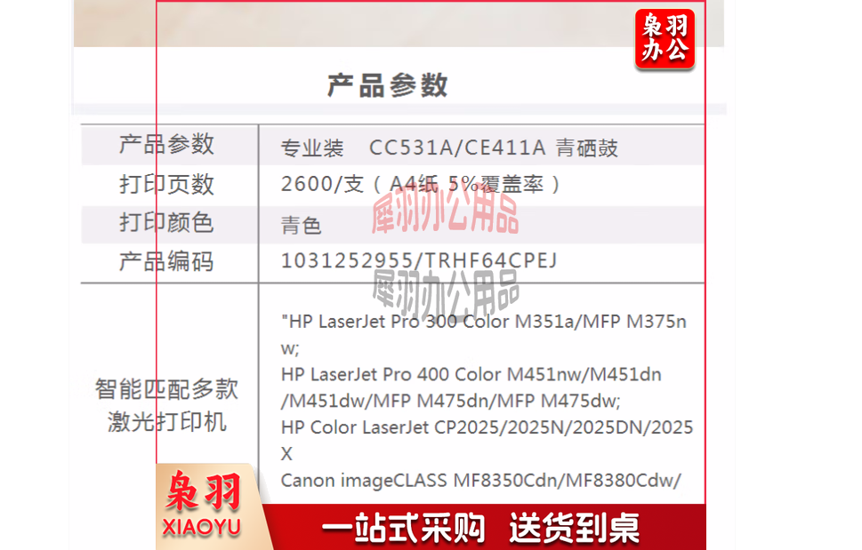 天威 CC531A/CE411A/CRG318/418R 硒鼓(TRHF64CPEJ) 2600页 青色 (适用于HPLaserJetPro300ColorM351a