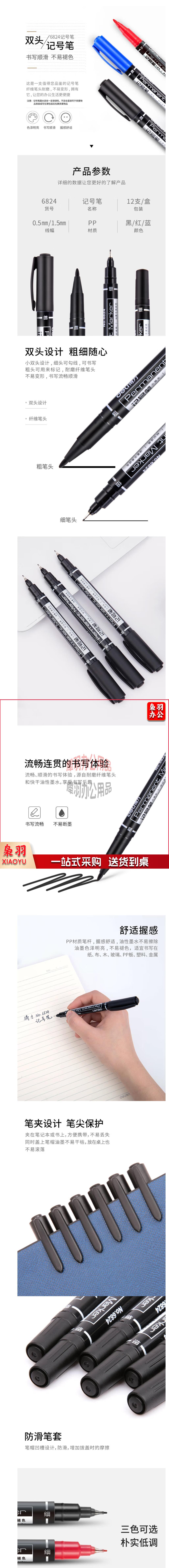 得力6824 小双头黑色记号笔 单支价格(12支/盒)