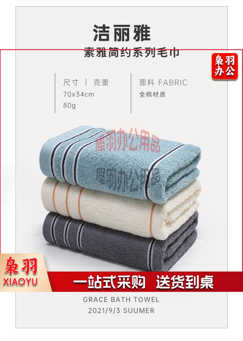 洁丽雅毛巾纯棉成人洗脸巾 纯色简约条纹 A类目毛巾 新疆棉男士女士擦脸巾 杏色米单条70*34cm抗菌款毛巾棕色2条