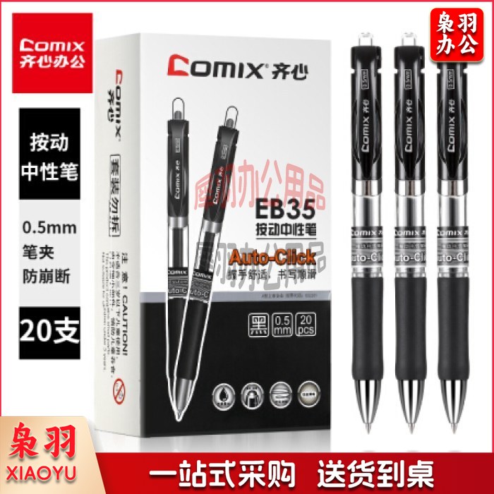 齐心(Comix)黑色子弹头按动中性笔/水笔/0.5mm EB35 20支/盒