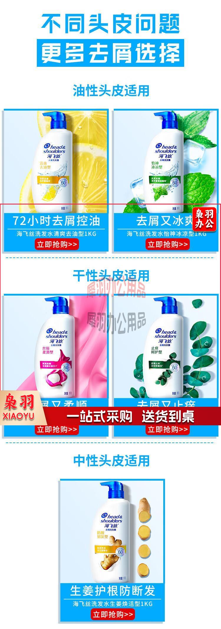 海飞丝洗发水清爽去油1KG男士女士洗发露洗头膏洗发液控油去屑去屑控油柠檬清爽1KG