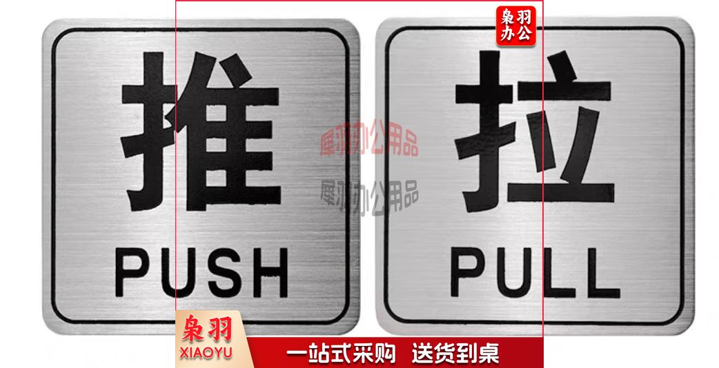 不锈钢拉门贴 推拉门“推”“拉”标识牌 8*8CM
