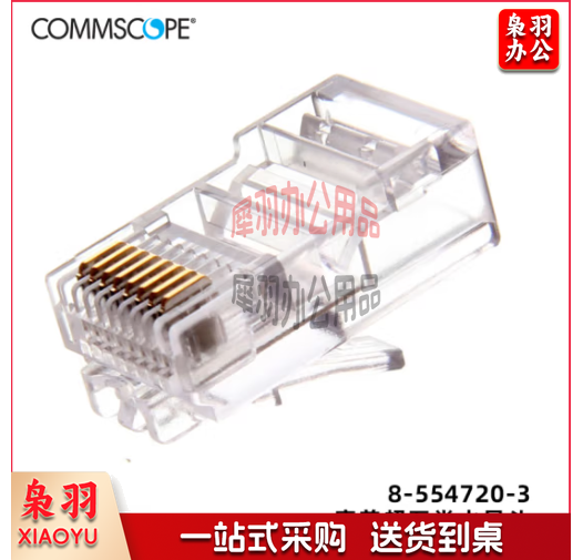 康普超五类非屏蔽水晶头8-554720-3康普8位非屏蔽高性能水晶连接头100个原安普AMP百兆网络RJ45透明色