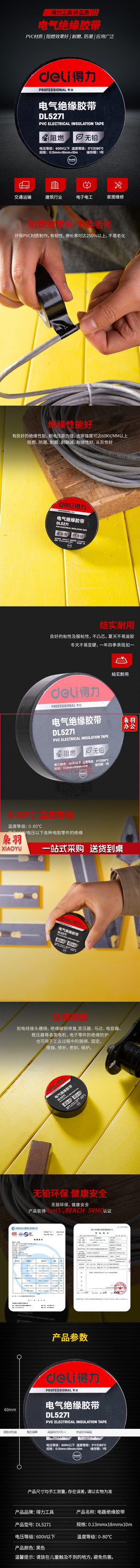 得力工具 型号 DL5271 电工胶布pvc阻燃绝缘胶带 防水耐高温加宽强粘黑色大卷 电气绝缘胶带 电工电线胶布 无铅密封线束阻燃耐磨 家用绝缘胶布 专业级电气绝缘胶带(黑) 0.13mm×18mm×10m