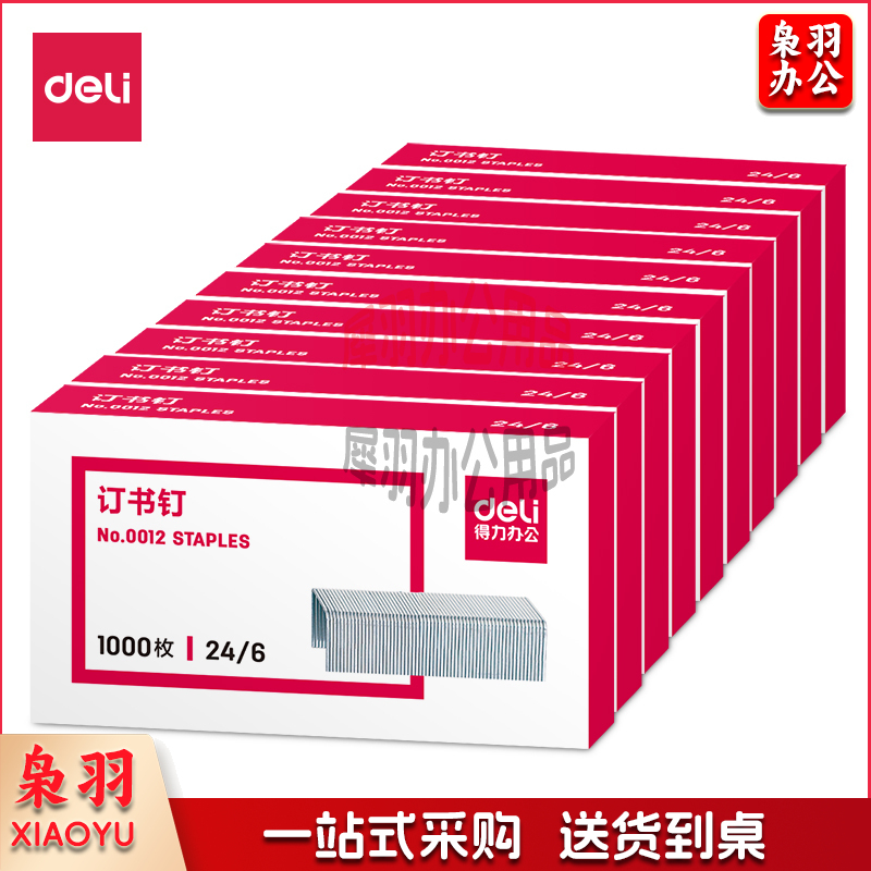 得力(deli)【10盒装】0012订书钉24/6标准通用型订书针12号钉书针办公文具用品 24/6可订25页-0012(10盒)