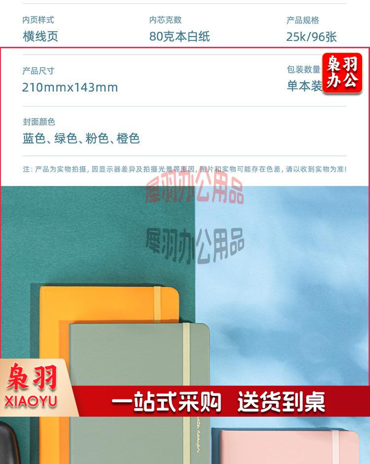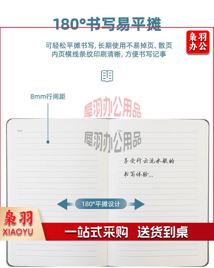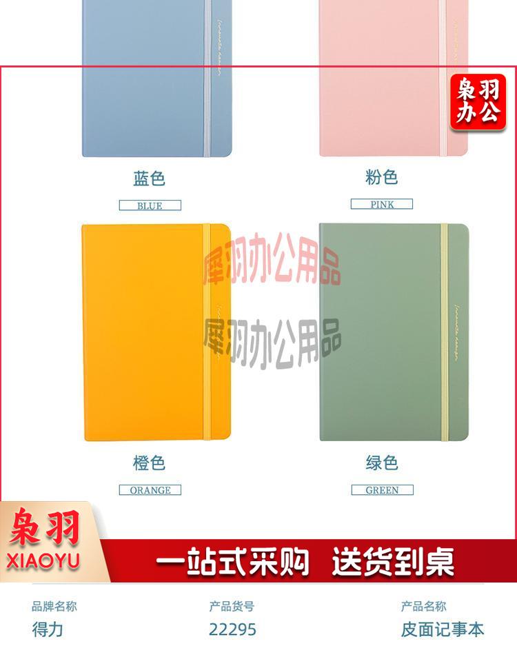 得力(deli)25K/96张笔记本子皮面本 记事本商务本办公用品 绿色22295