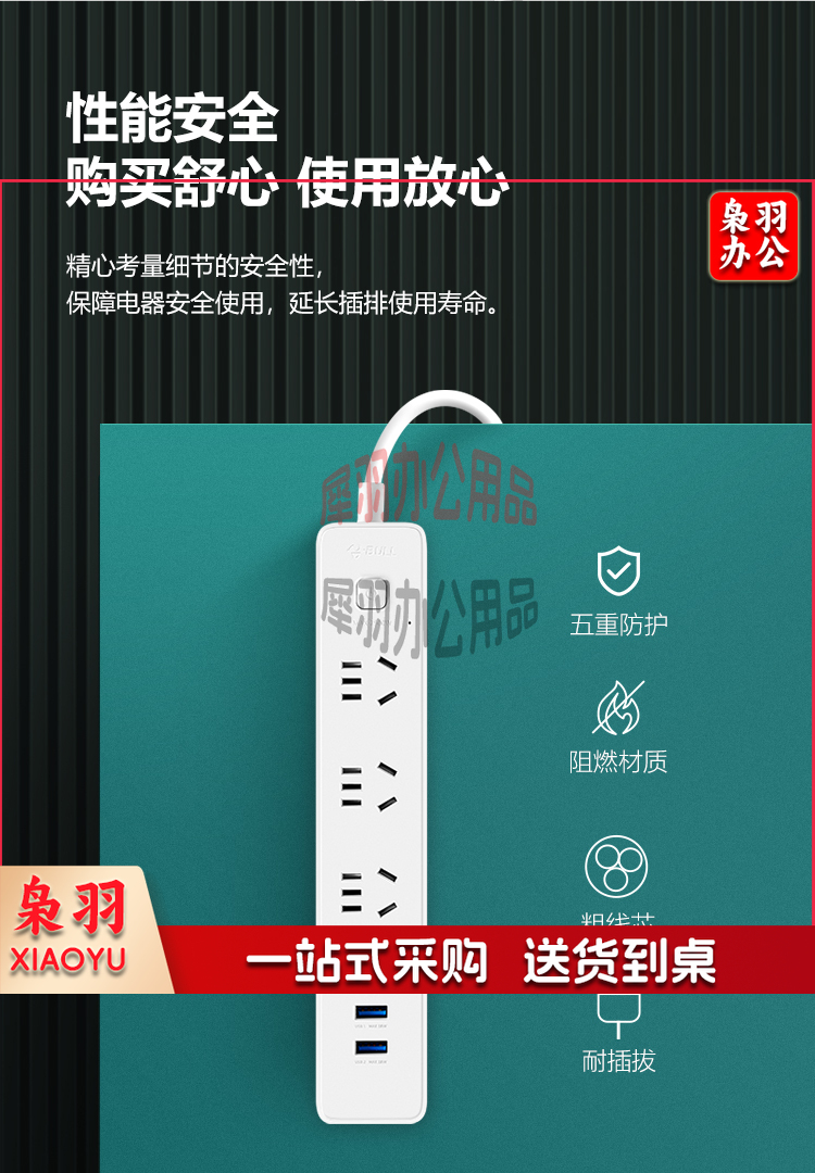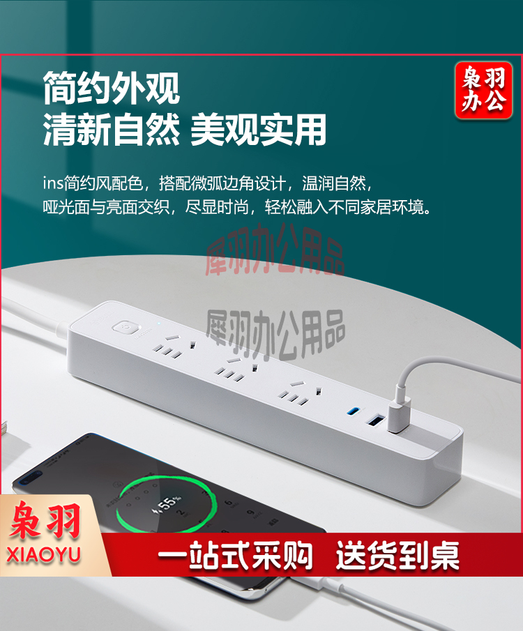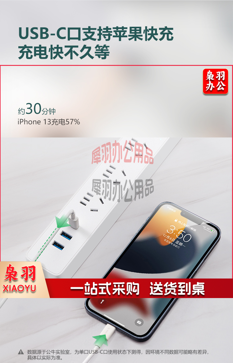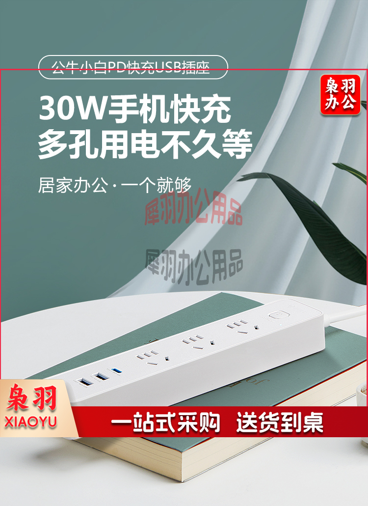 公牛(BULL)30W PD苹果快充插座/插线板/插排/接线板 Type-c口+USB口+3插孔 全长1.8米白色 GNV-UU4303B