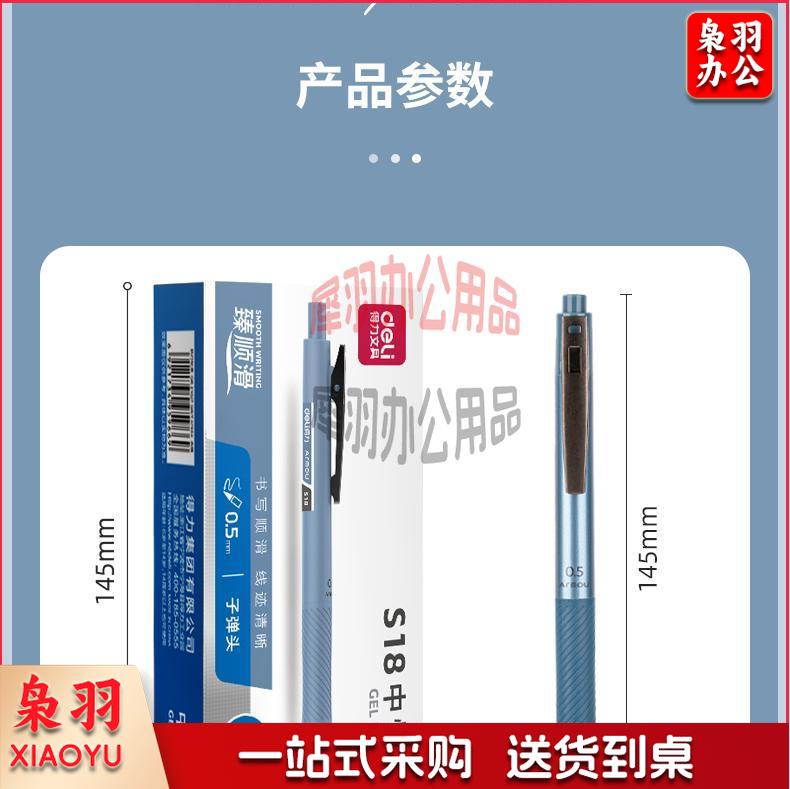 得力(deli)【顺滑之星】臻顺滑按动中性笔签字笔 办公中性笔 0.5mm子弹头 12支/盒蓝色 S18蓝
