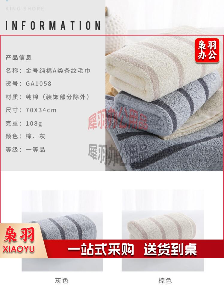 金号纯棉毛巾 厚实吸水耐用 70*34CM 108克 GA1058 灰色