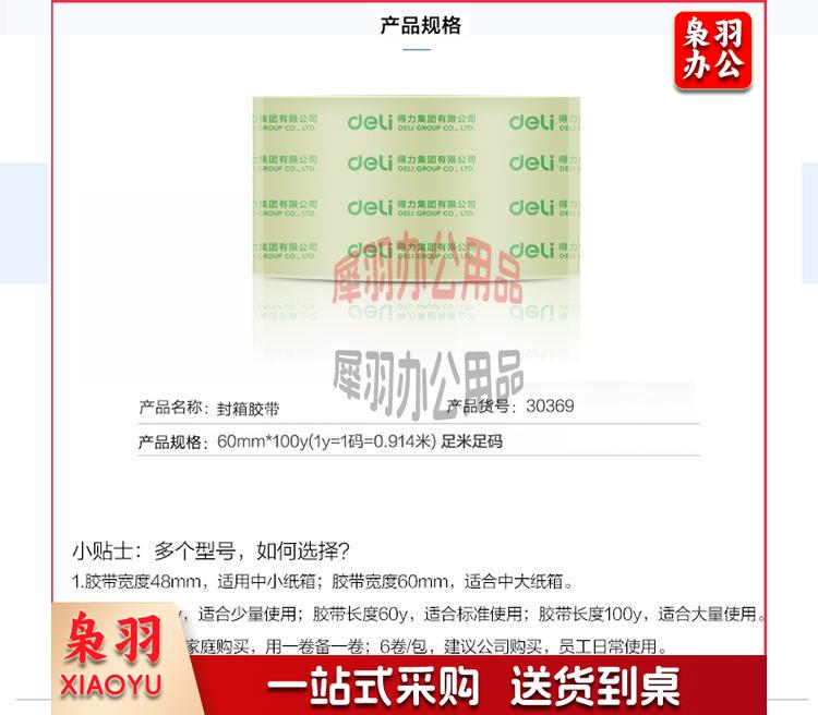 得力(deli)高品质高透明封箱胶带/打包胶带 60mm*100y*50um(91.4m/卷) 单卷装 办公用品 30369