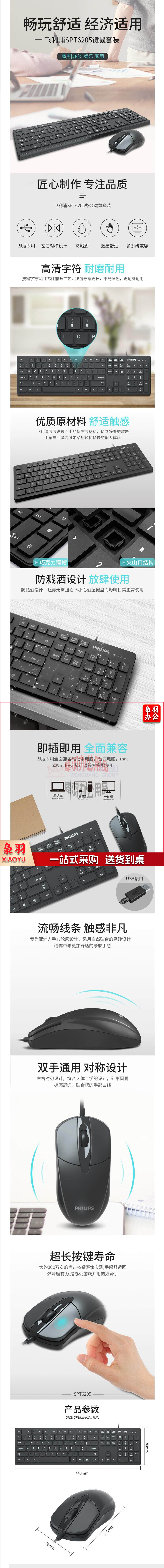 飞利浦/Philips SPT6205 有线键盘/办公键鼠套装 黑色