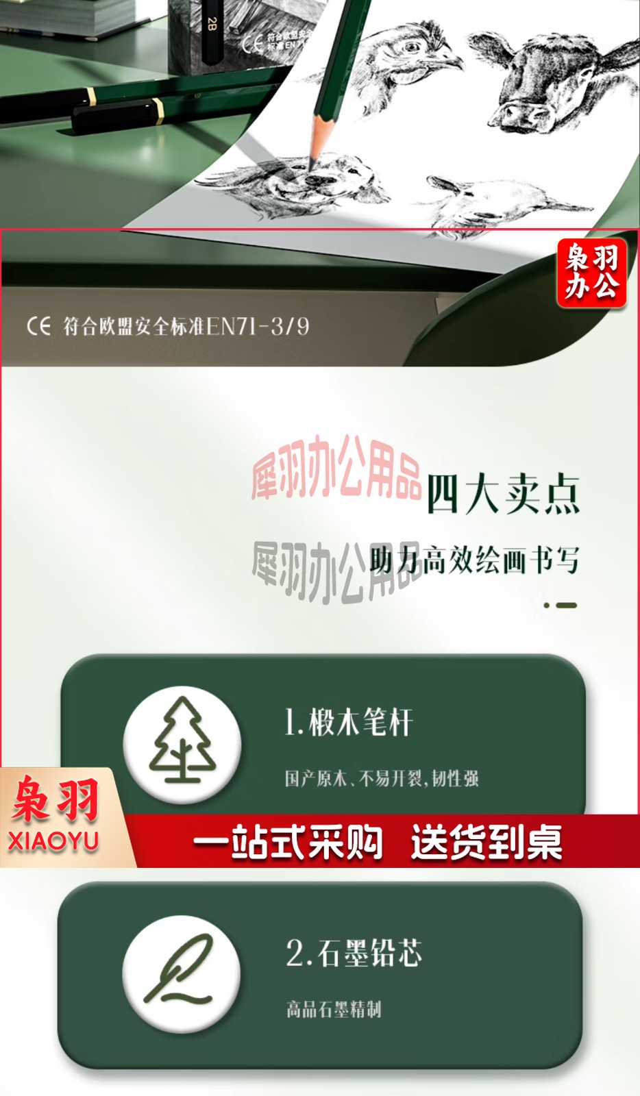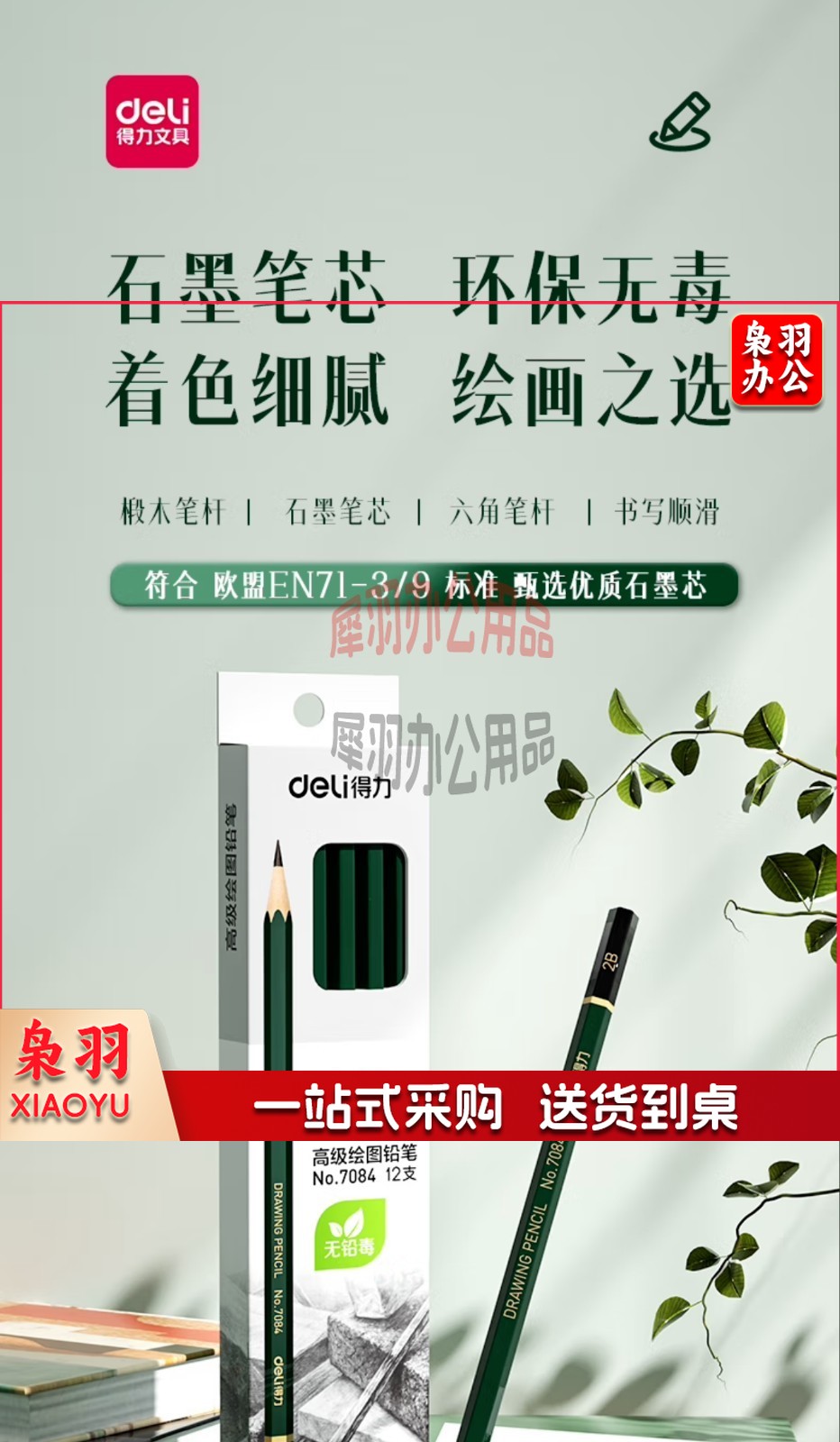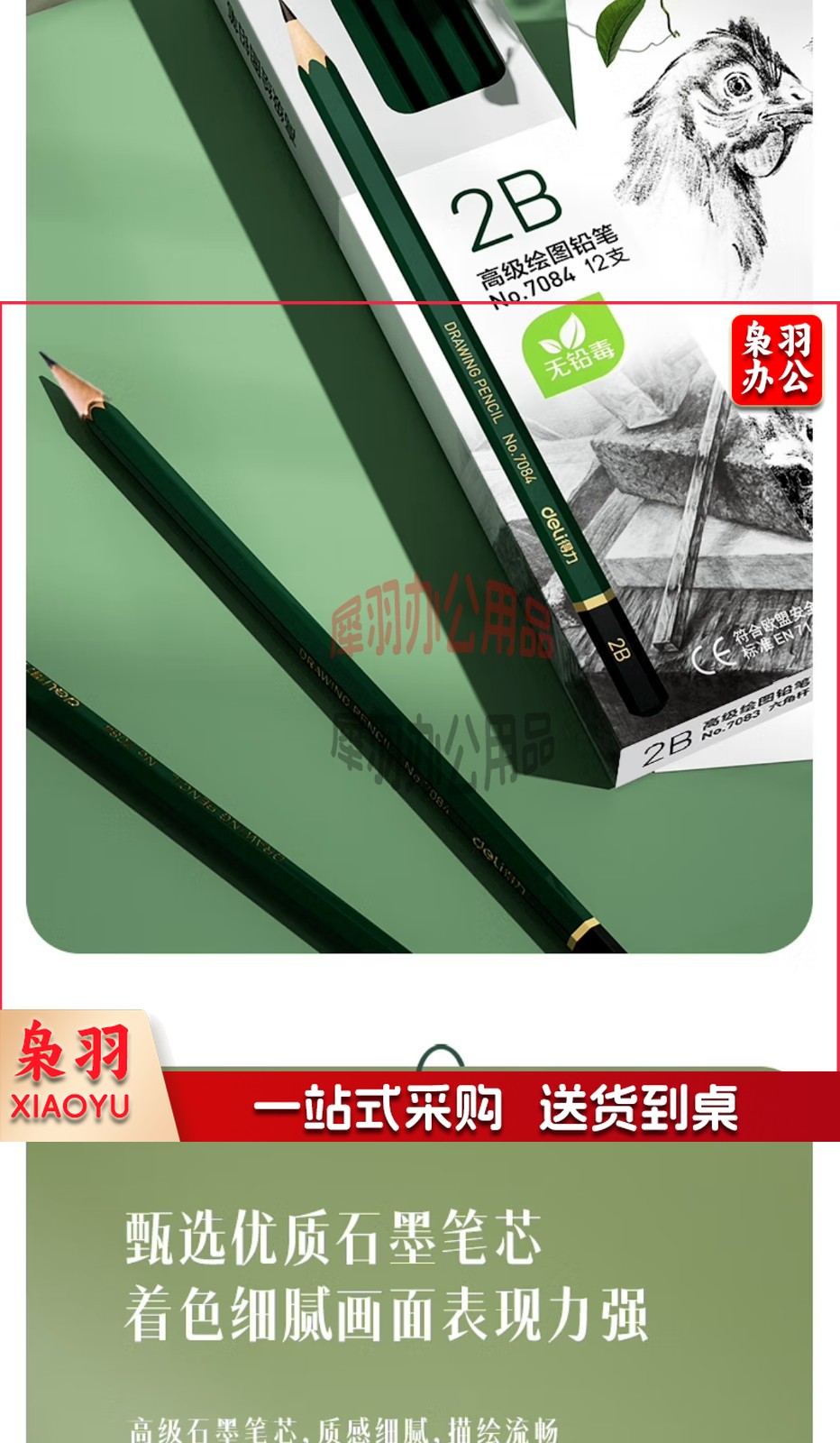 得力7084-2B高级绘图铅笔(绿色)(12支/盒)