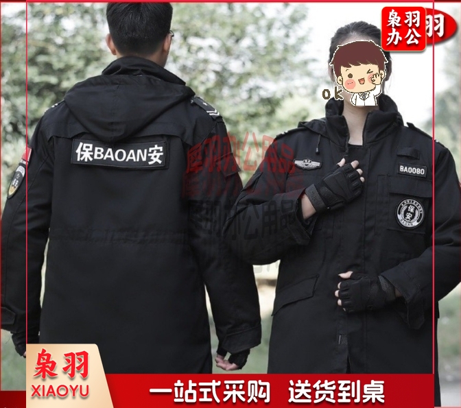 斜纹加厚加长大棉服 冷库 站岗 抗寒拆卸冬季棉大衣防寒服-黑色斜纹尺码可选(下单前询价)