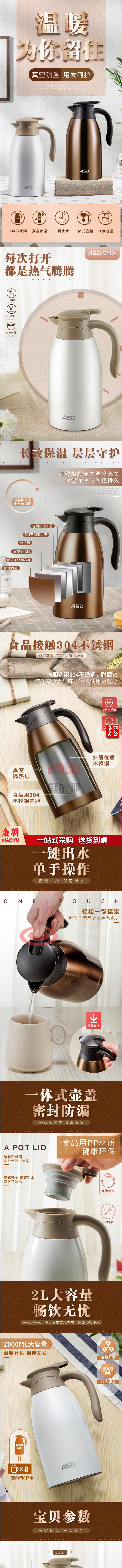 爱仕达 2L热水壶 保温壶 真空304不锈钢 RWS20P4