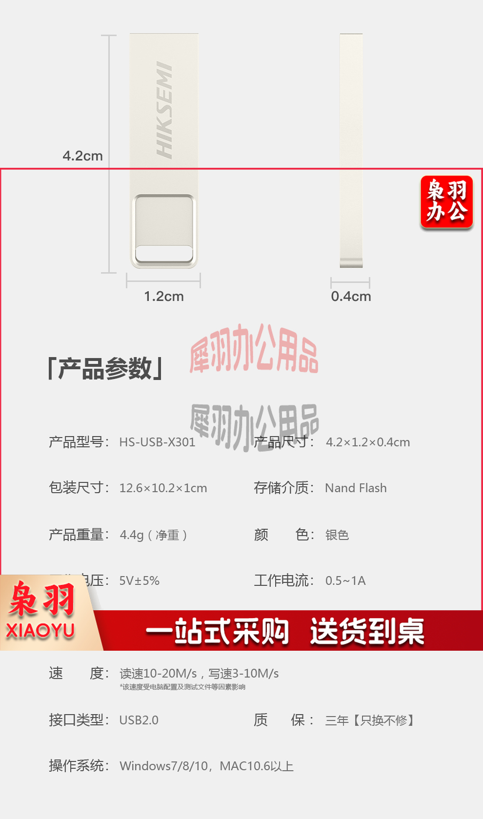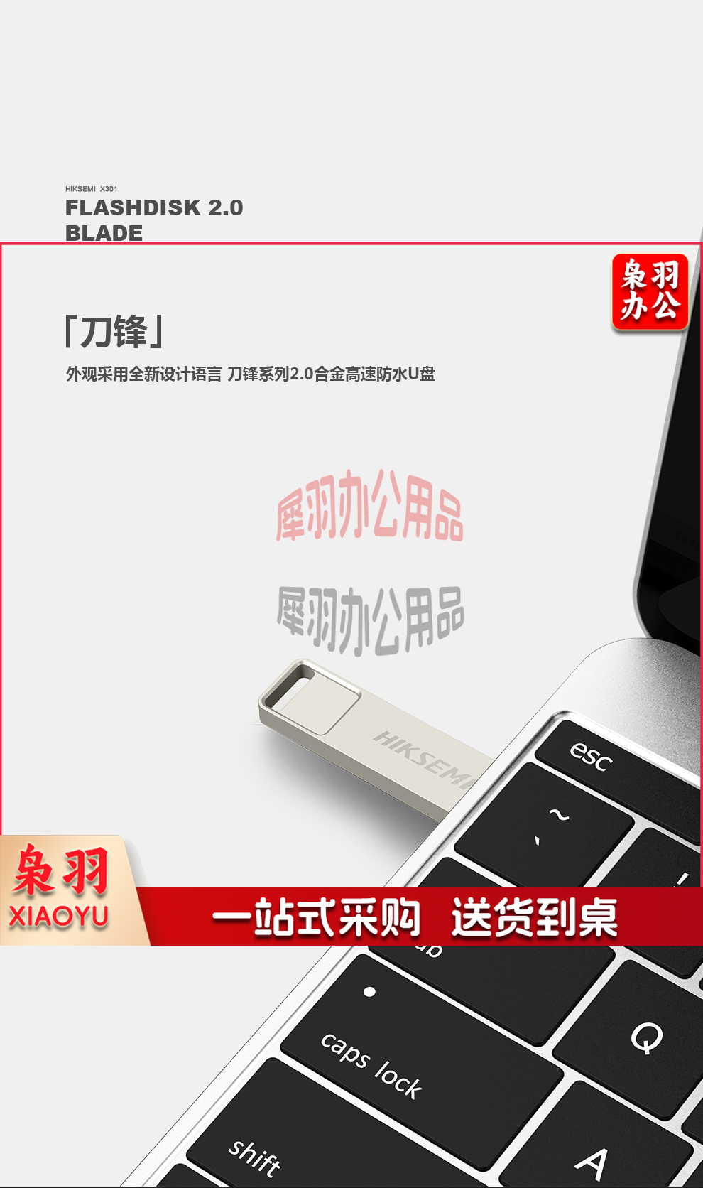 海康威视(HIKVISION) 4GB USB2.0 招标金属U盘X301刀锋银色 一体封装防尘防水 电脑车载投标优盘