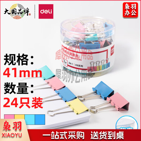 得力(deli)长尾夹凤尾夹(41mm/24只/筒)文具办公资料铁夹黑色金属燕尾夹彩色大号文件夹小号票据试卷夹鱼尾夹不锈钢 8552ES彩色大号(41mm/24只/筒 DBJ202403011354513