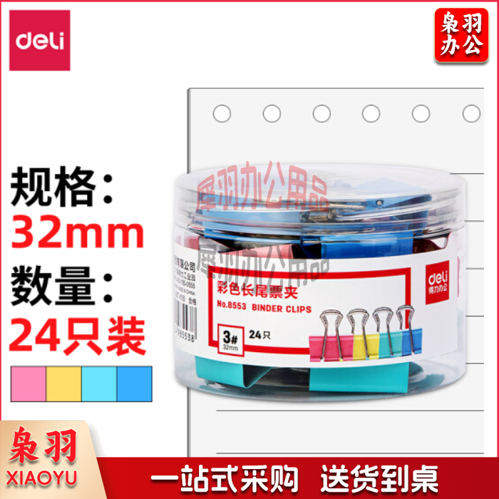 得力(deli) 8556 6# 60只15mm彩色长尾夹票夹
