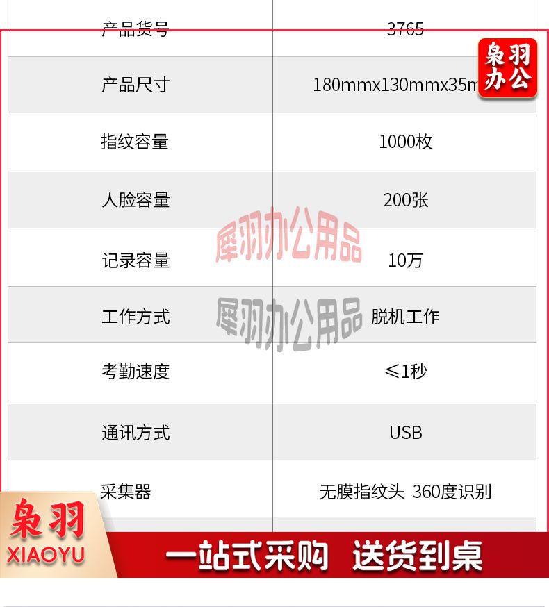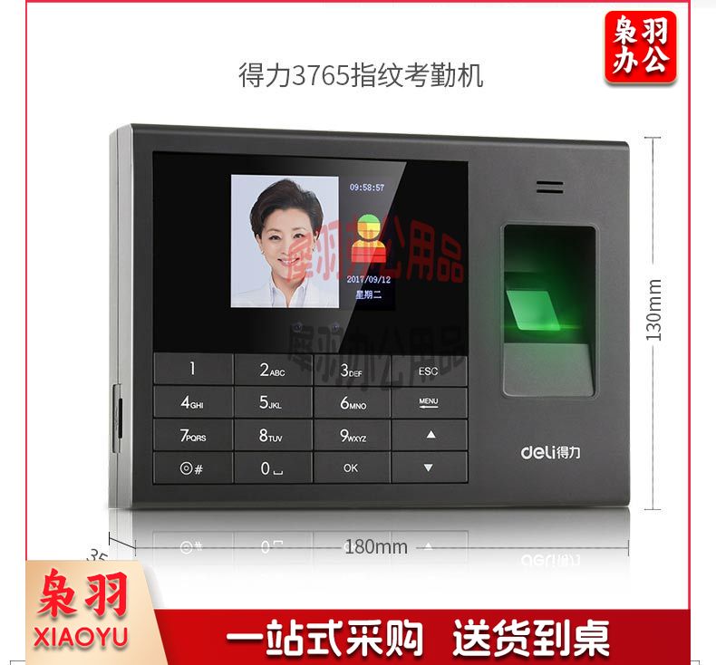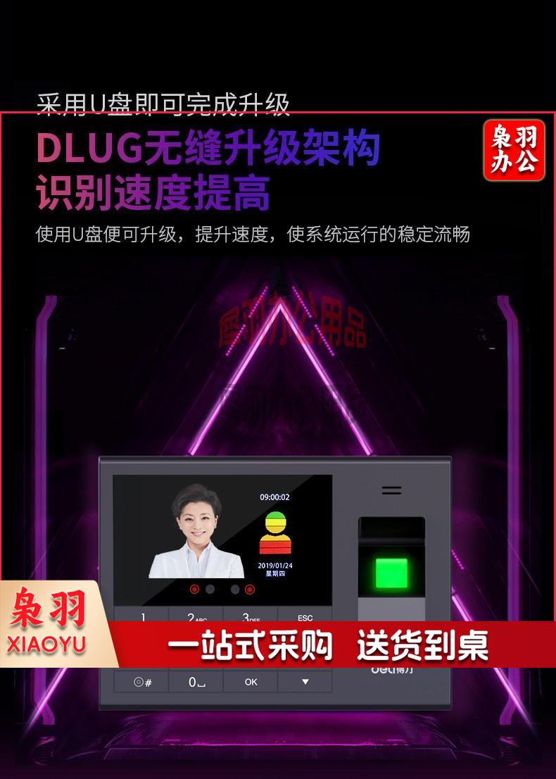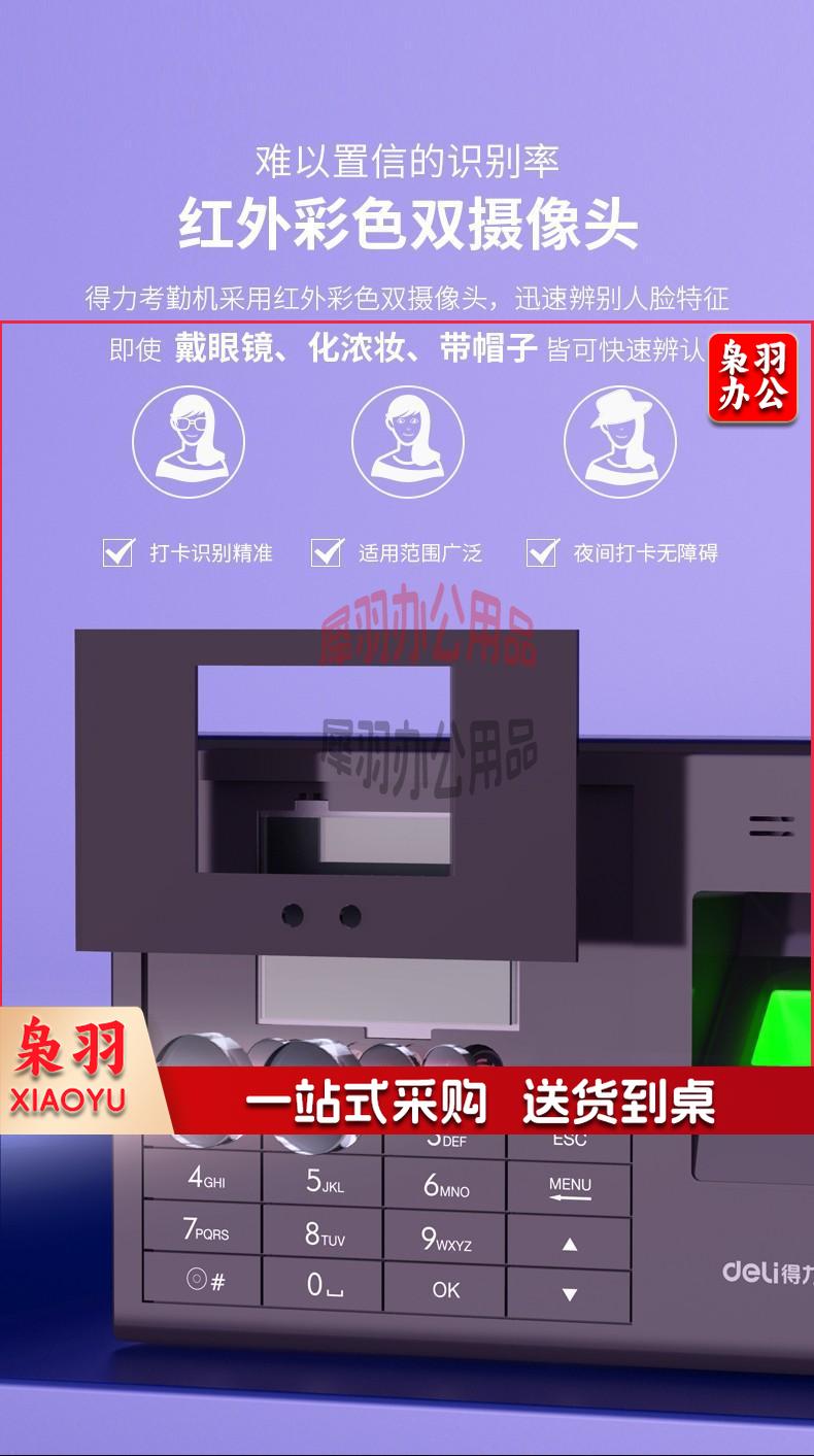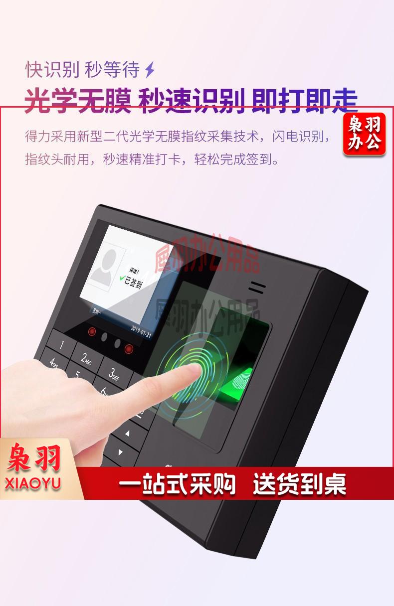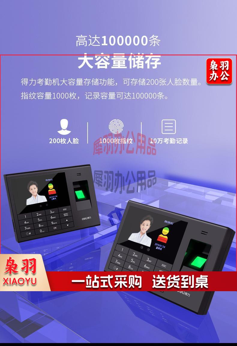 得力(deli) 3765 人脸指纹混合识别考勤机 无接触打卡 面部识别指纹一体机刷脸打卡机 商用办公