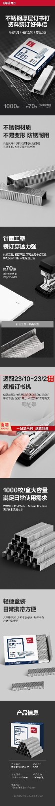 得力0210不锈钢厚层订书针订书钉23/10(银)(1000枚/盒)
