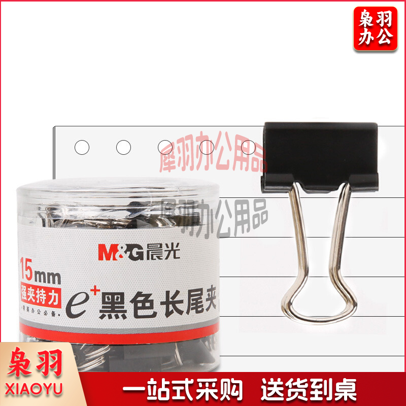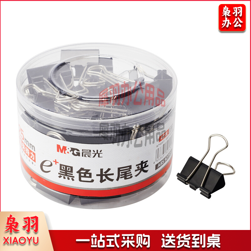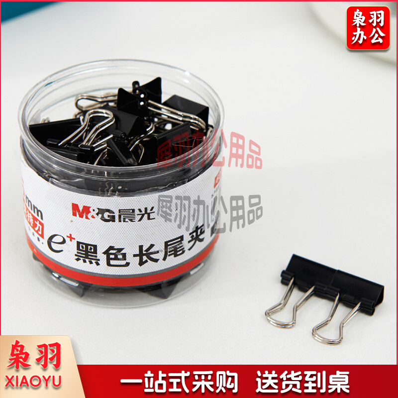晨光 M&G Eplus筒装黑色长尾夹 6号 ABS92737 15mm 60个/筒 60筒/箱