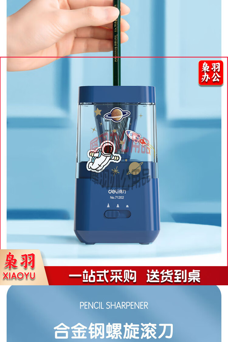 得力(deli)电动削笔机 双电源卷笔刀(电池/插电)电动削笔器/转笔刀削笔刀铅笔刀 星空蓝送货上门zangjh