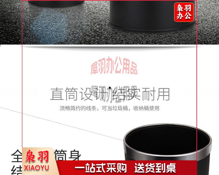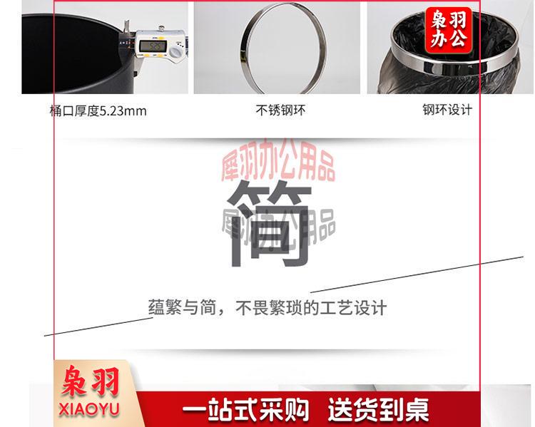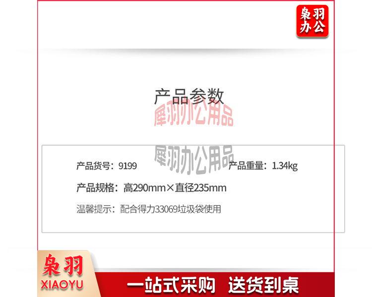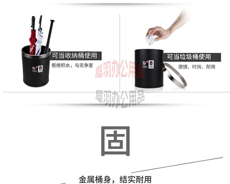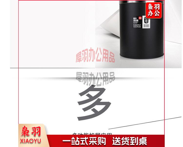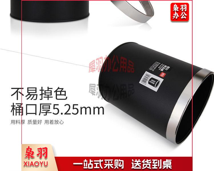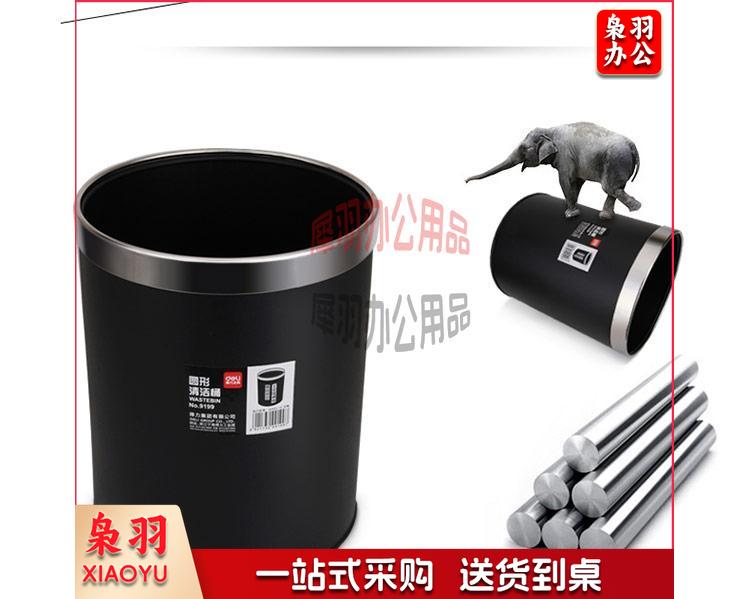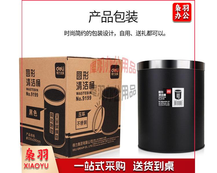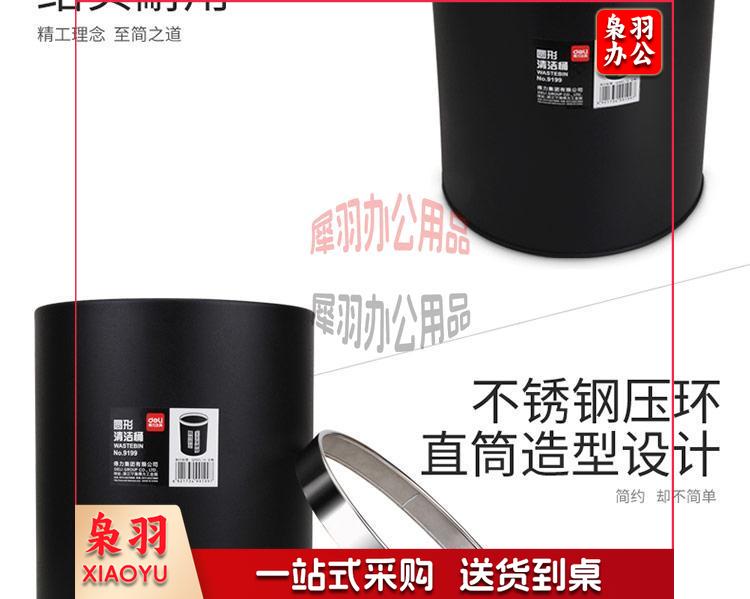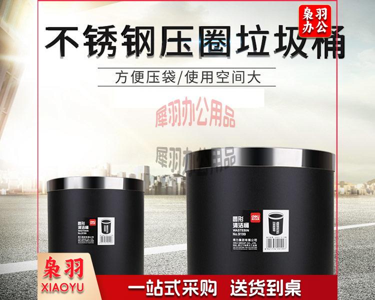 得力(deli)耐用带不锈钢压圈垃圾桶 厨房卫生间家用圆形清洁桶 办公纸篓 黑色9199