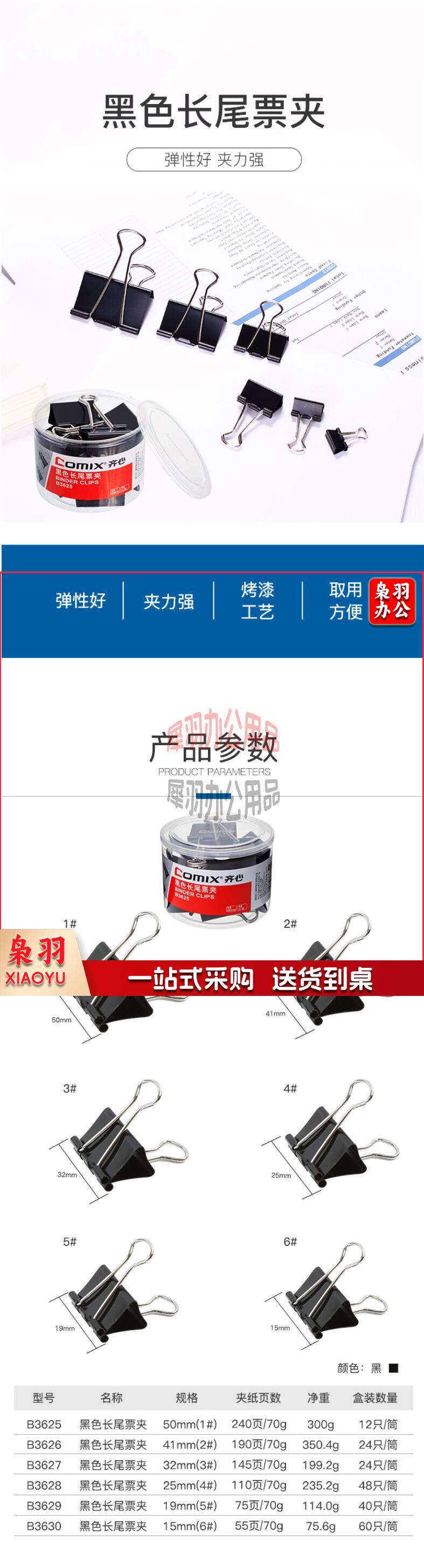齐心(Comix)长尾夹票夹 黑色金属 5#19mm 40只/筒B3629