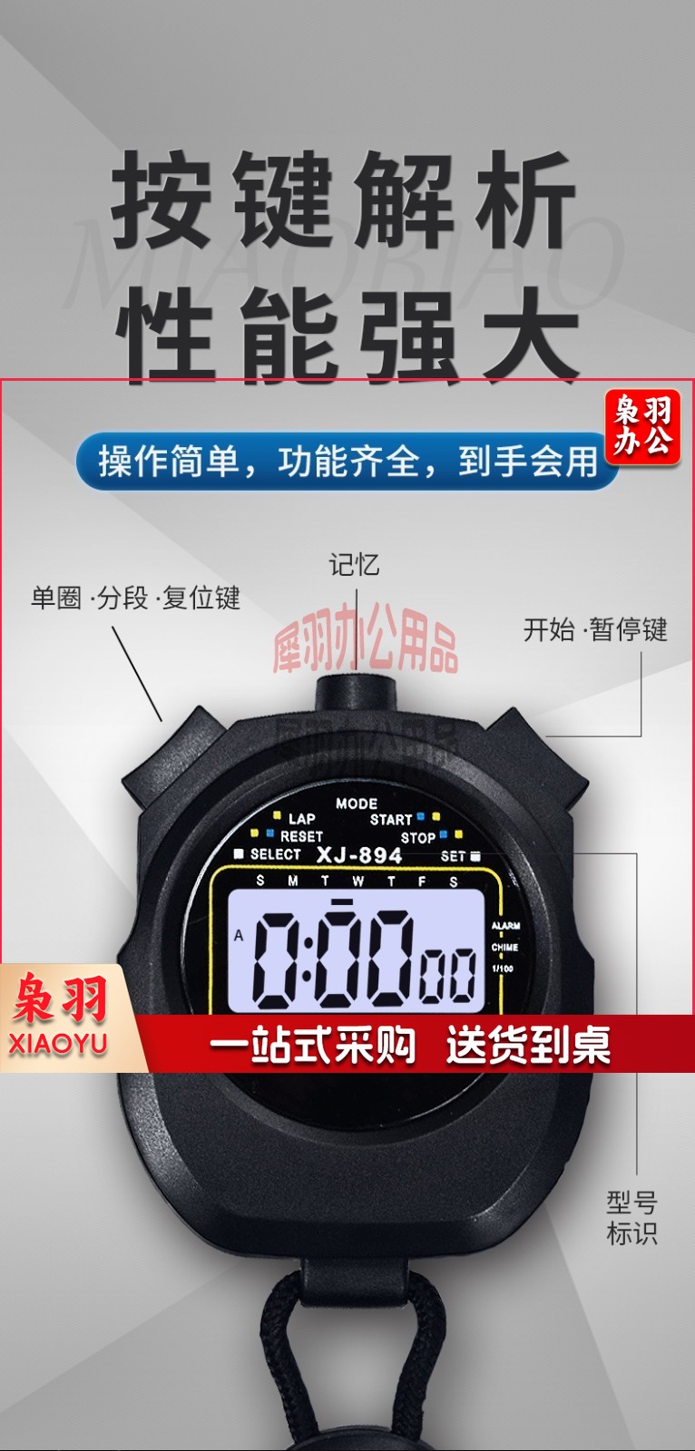 MYSPORTS秒表机械计时器训练专业跑步提醒数字比赛秒表训练专业机械体育 XJ-894 秒表1排两道+防水