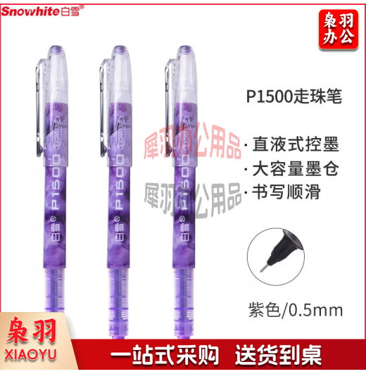 白雪(snowhite) 直液笔针管中性笔0.5mm P1500 12支/盒 紫色