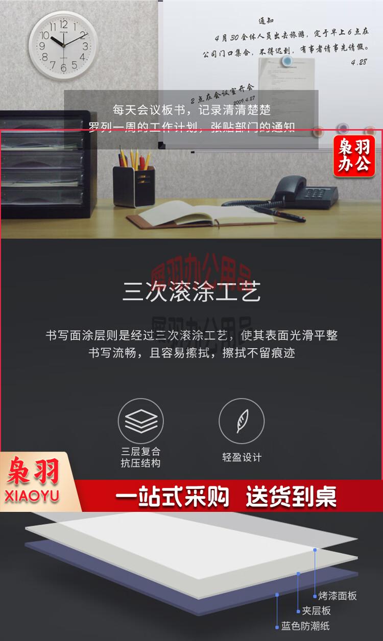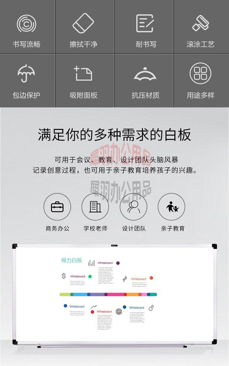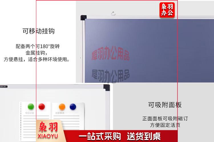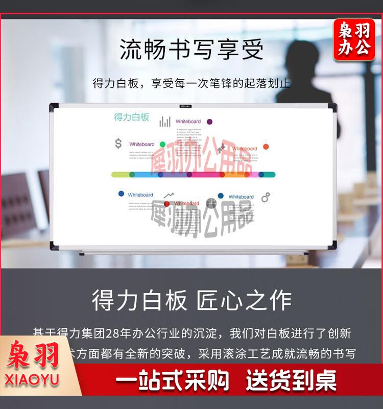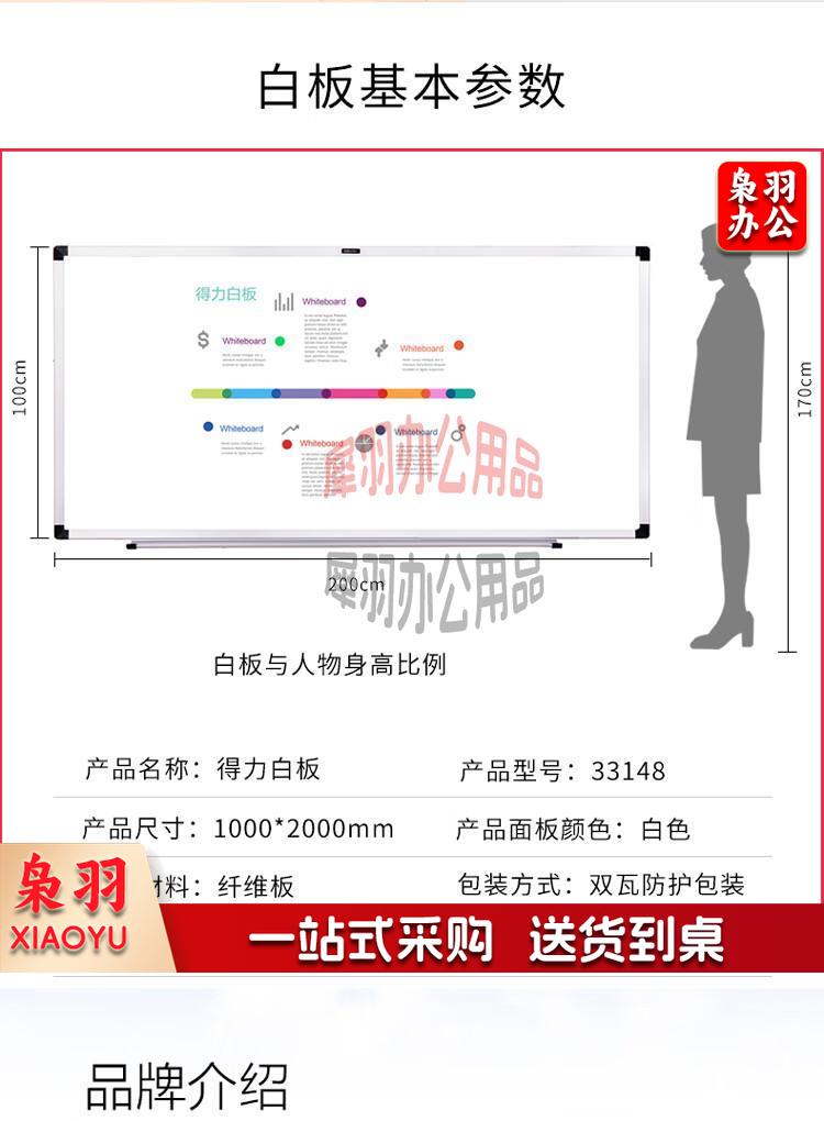 得力(deli)200*100cm磁性办公教学会议挂式白板悬挂式家用儿童写字板黑板(含白板擦 白板笔 磁钉)33148