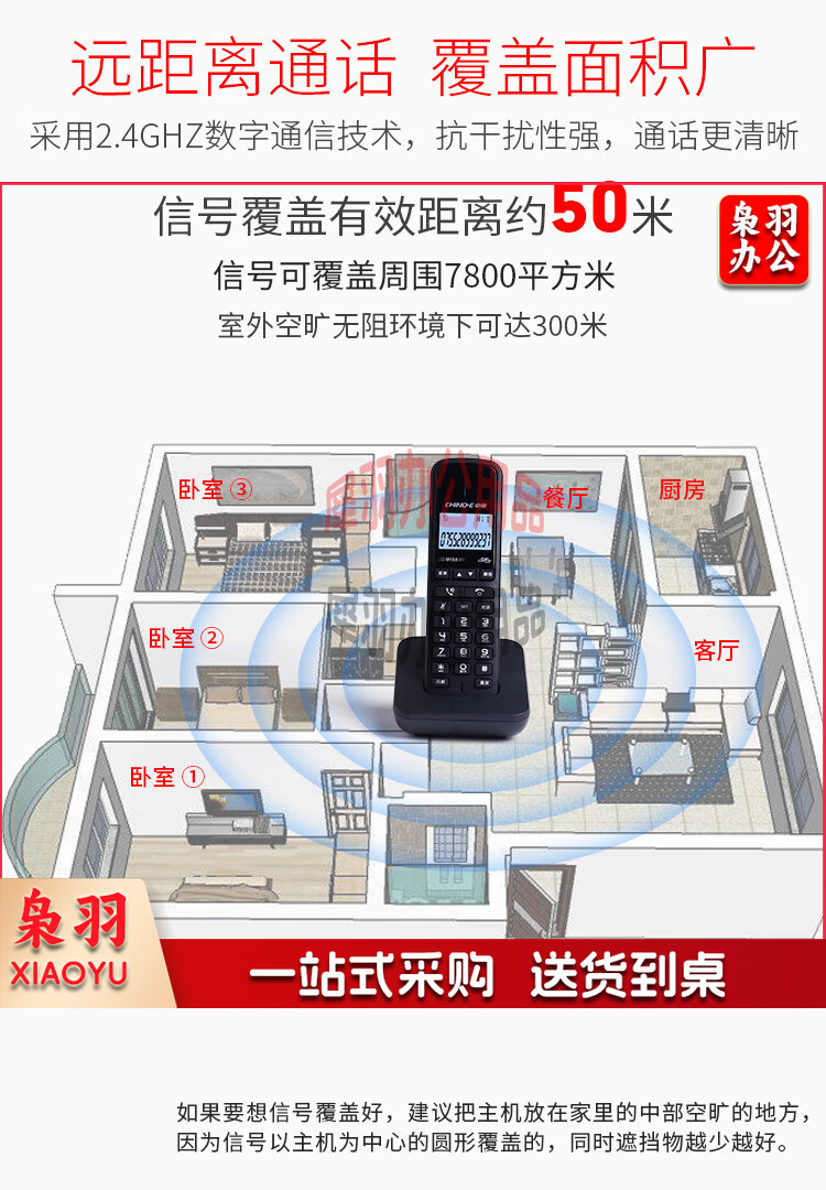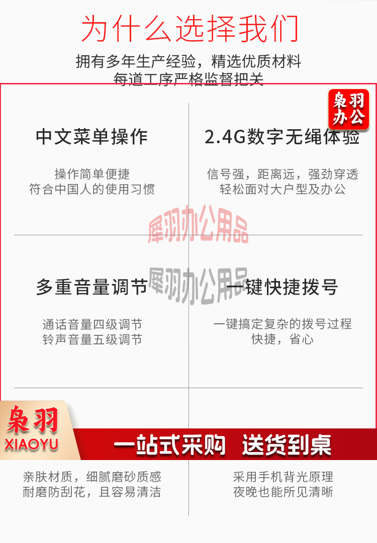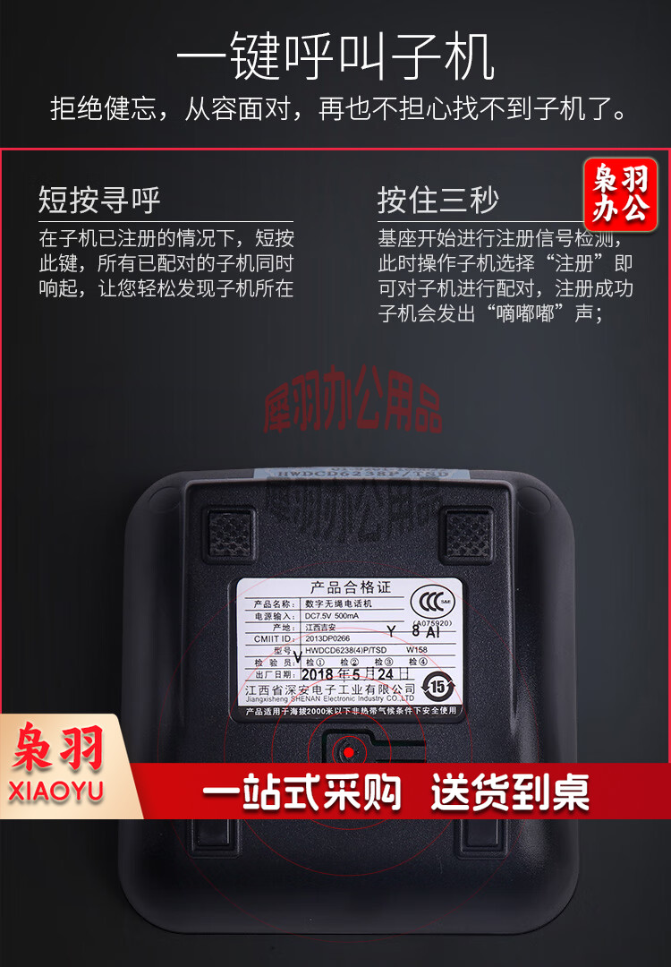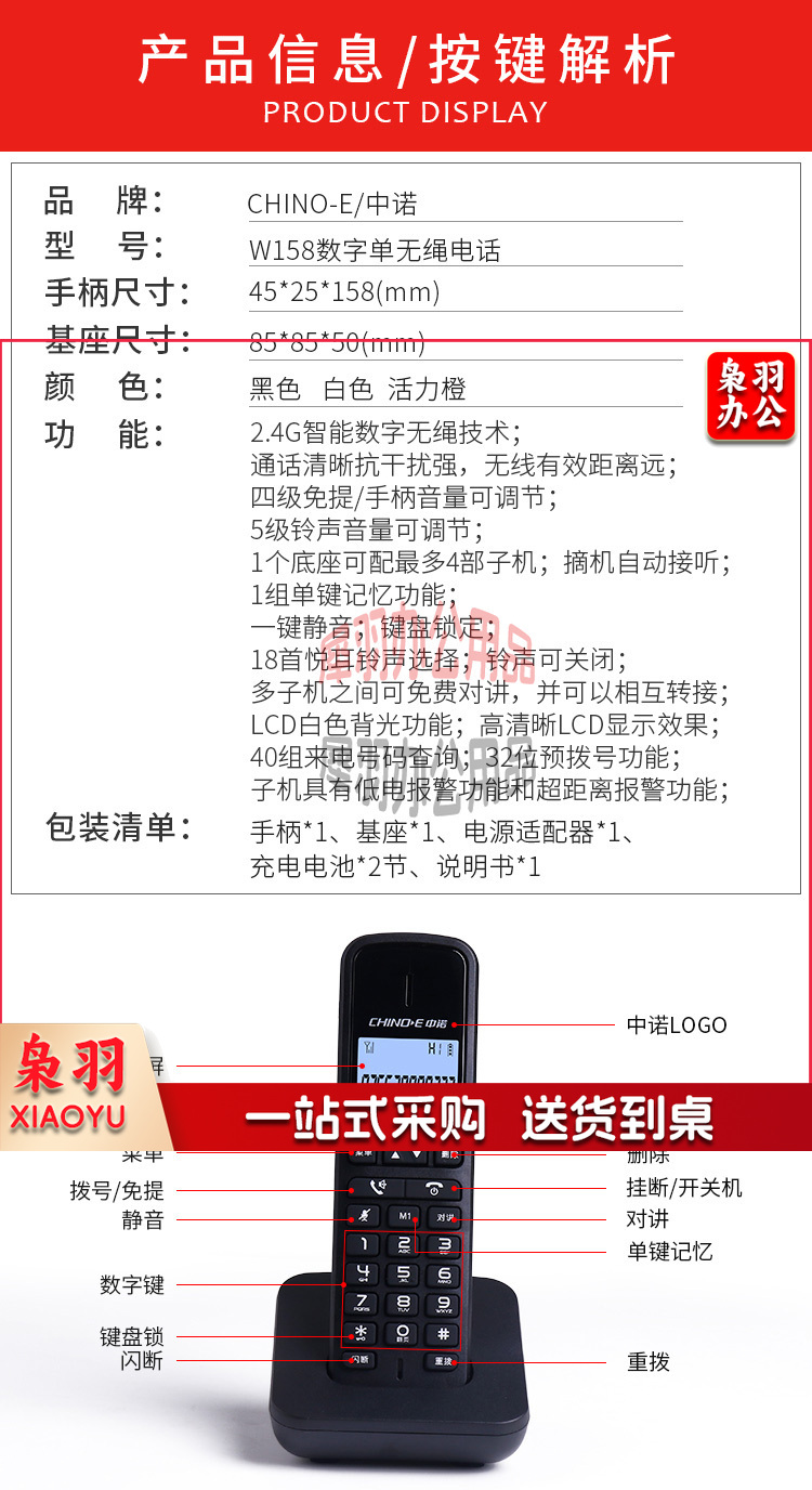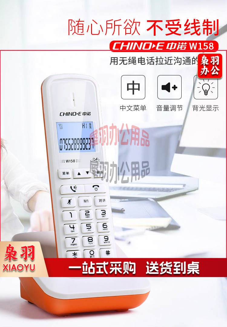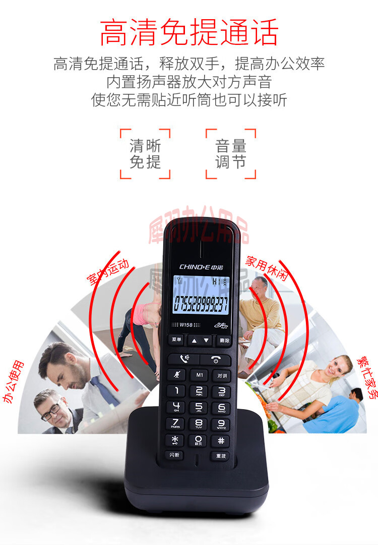 中诺 W158 无绳单机座机电话机 白屏背光单键拨号 黑色