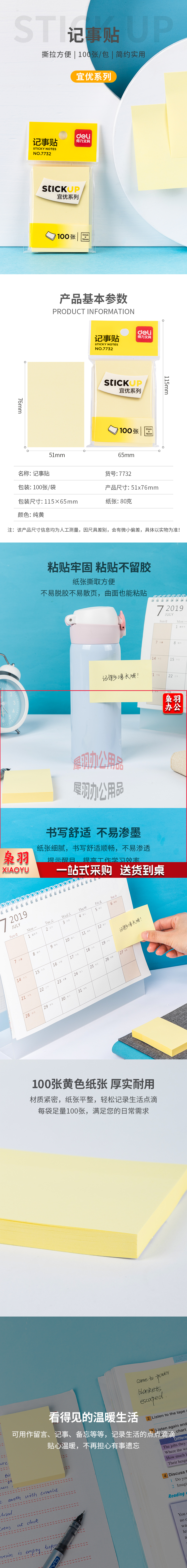 得力(deli)7732记事贴(淡黄)51*76mm(包)