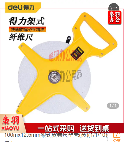 得力(deli) 塑壳架式纤维尺100mx12.5mm架式手提插尺钢卷尺工程测量尺