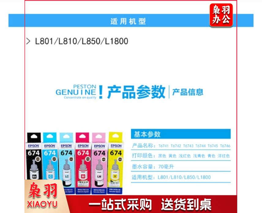 爱普生(EPSON)T674墨水 T6741/T6742/T6743/T6744/T6745/T67466色整套墨水L801/1800/850/810