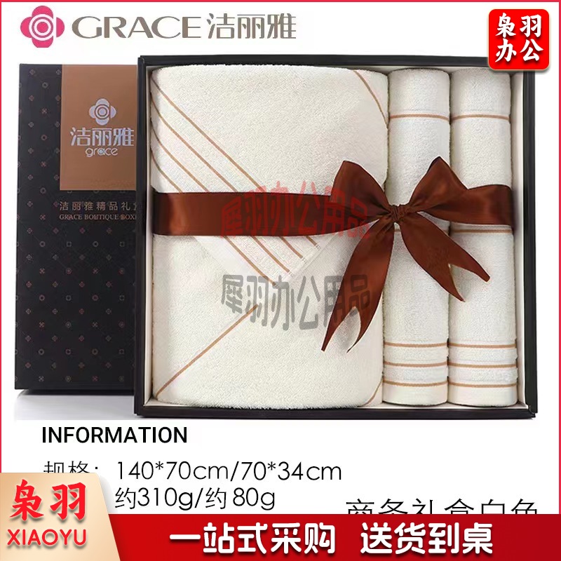 洁丽雅毛巾浴巾三件套 纯棉加厚成人男女礼盒套装