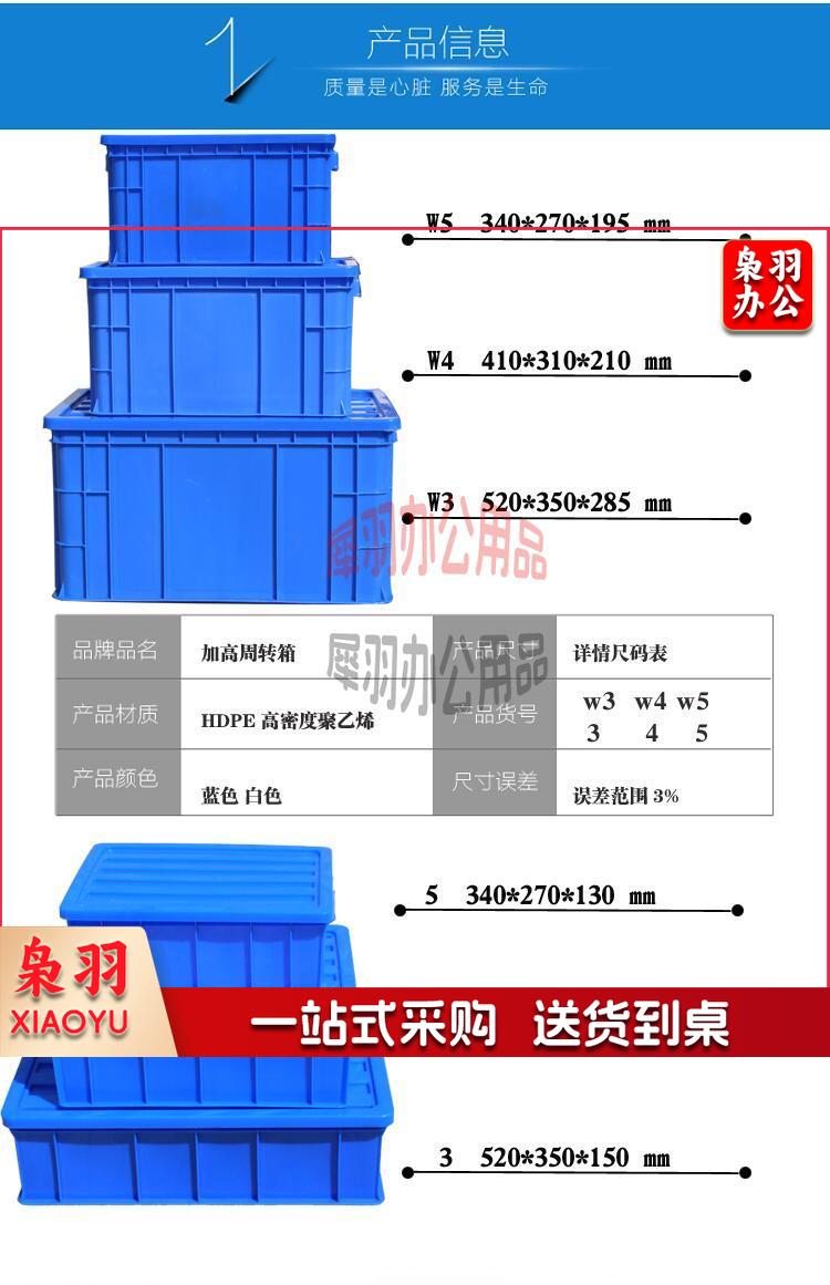 映季 长方形塑料周转箱收纳箱加高加厚带盖 w3蓝色 520*350*285