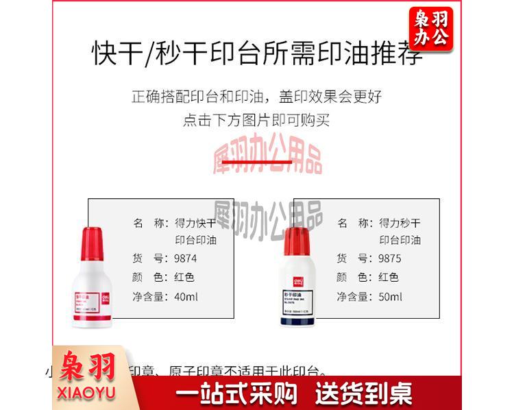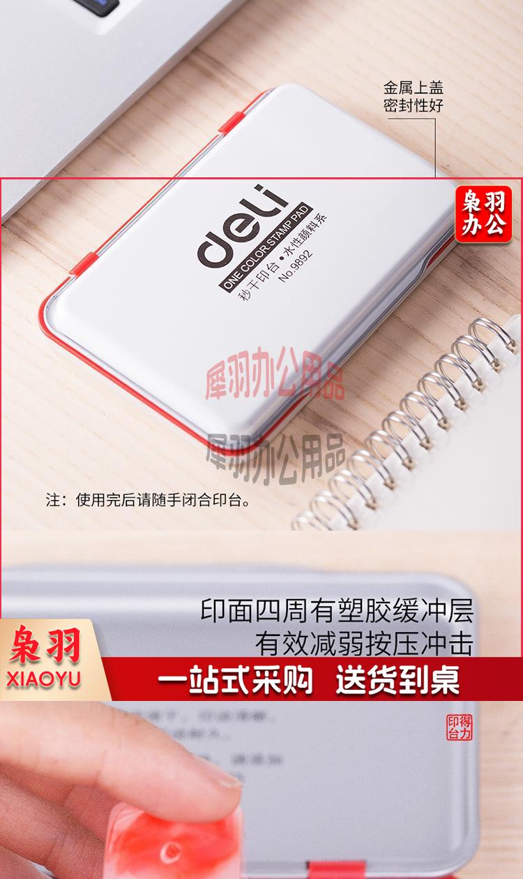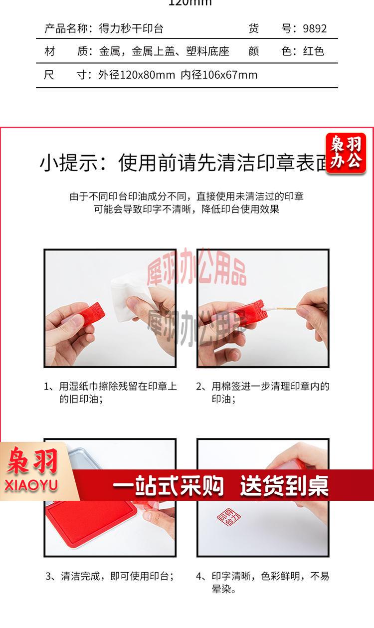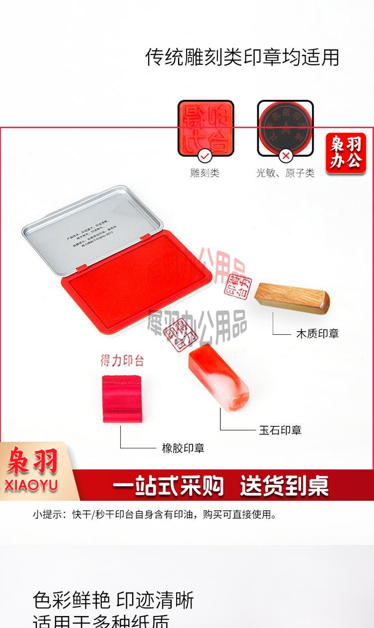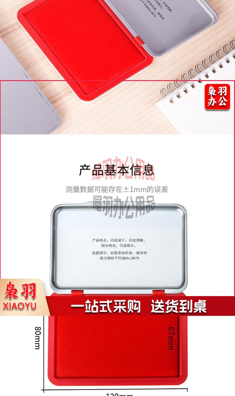 得力(deli)120*80mm金属方形中号秒干印台印泥 办公用品 红色9892