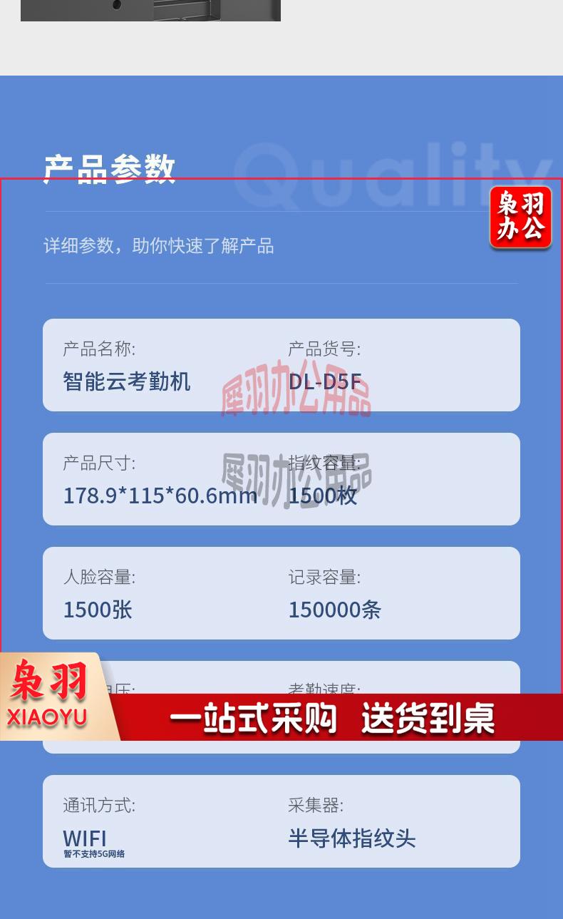得力(deli) DL-D5F 智能云考勤机 动态人脸+指纹识别打卡机Wifi联网 支持异地考勤分公司打卡 商用办公